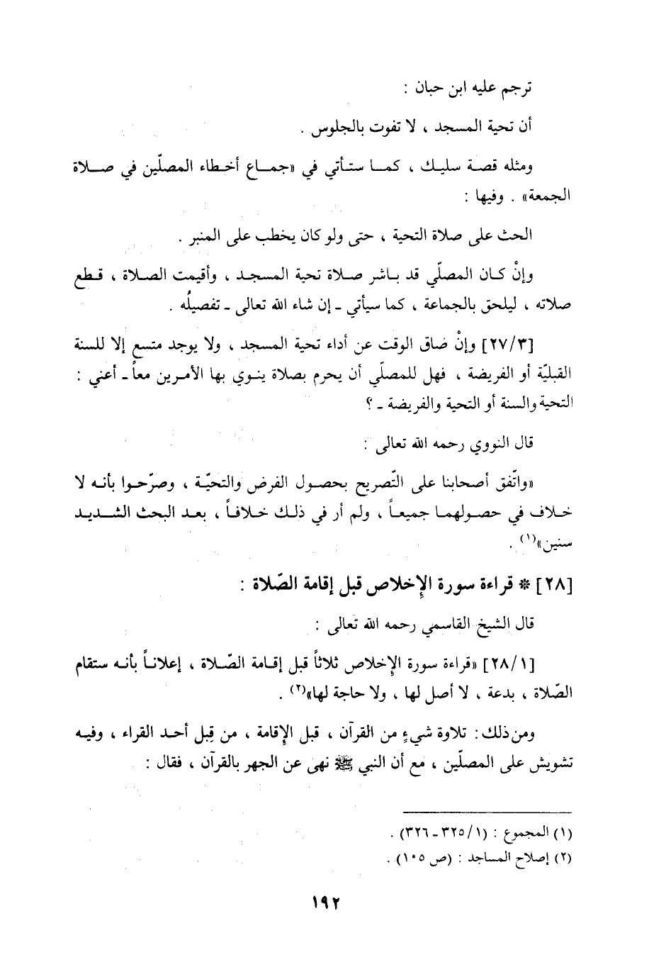 [1/28] ((قراءة سورة الإخلاص ثلاثاً قبل إقامة الصّلاة، إعلاناً بإنه ستقام الصّلاة، بدعة، لا أصل لها، ولا حاجة لها)) (2) .