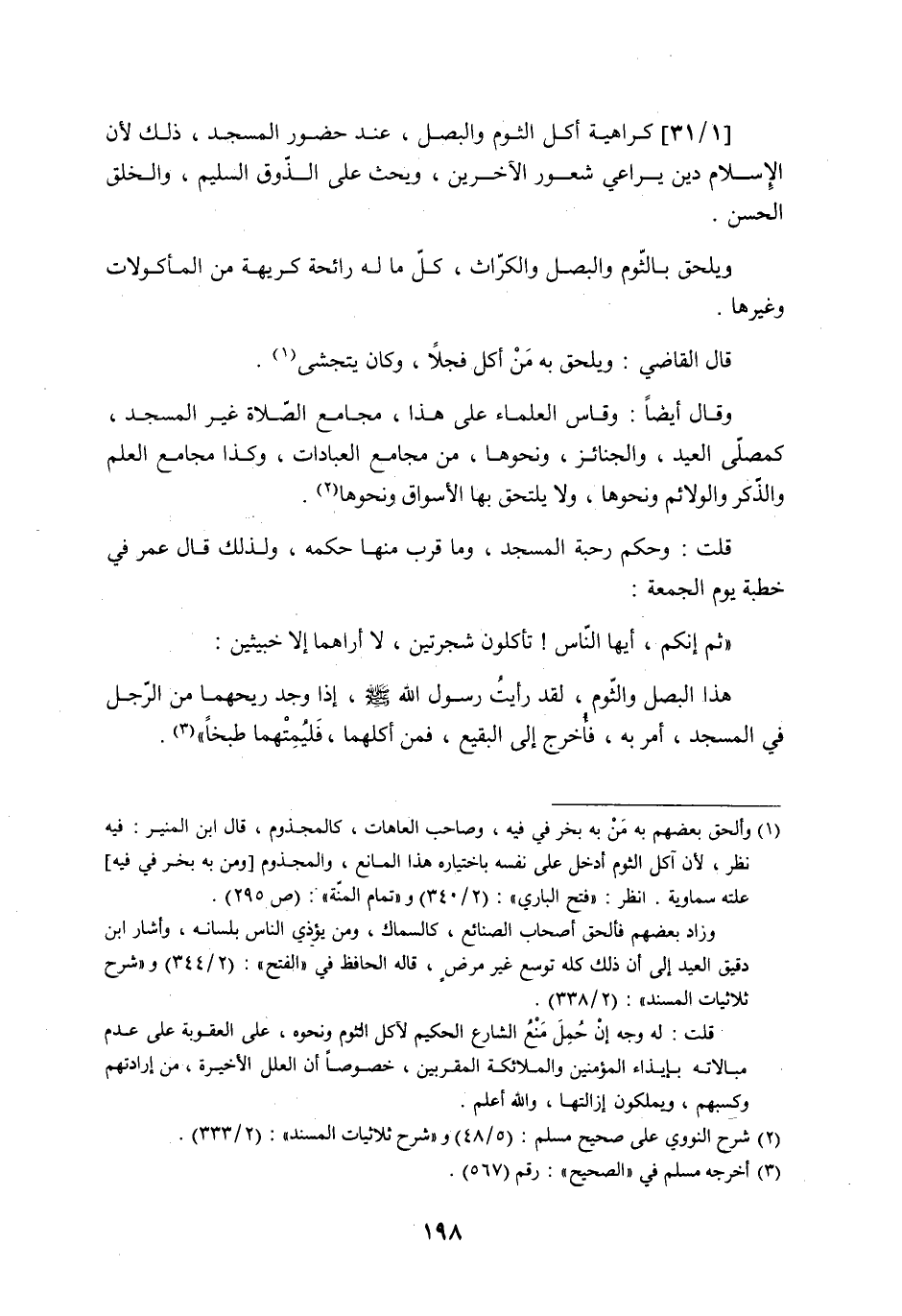 [1/31] كراهية أكل الثوم والبصل، عند حضور المسجد، ذلك لأن الإسلام دين يراعي شعور الآخرين، ويحث على الذّوق السليم، والخلق الحسن.