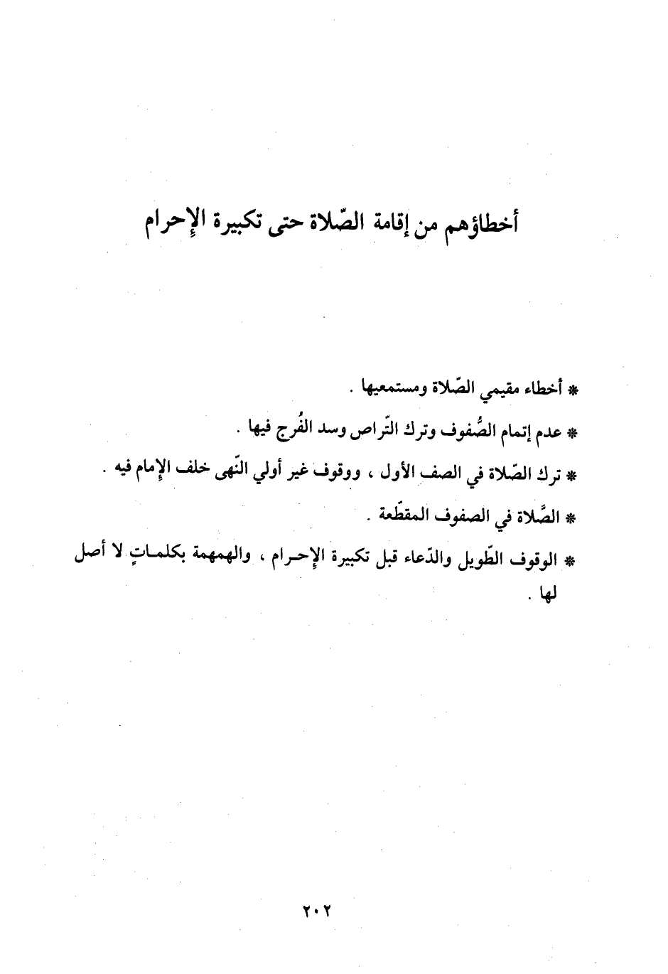 * أخطاء مقيمي الصّلاة ومستمعيها.