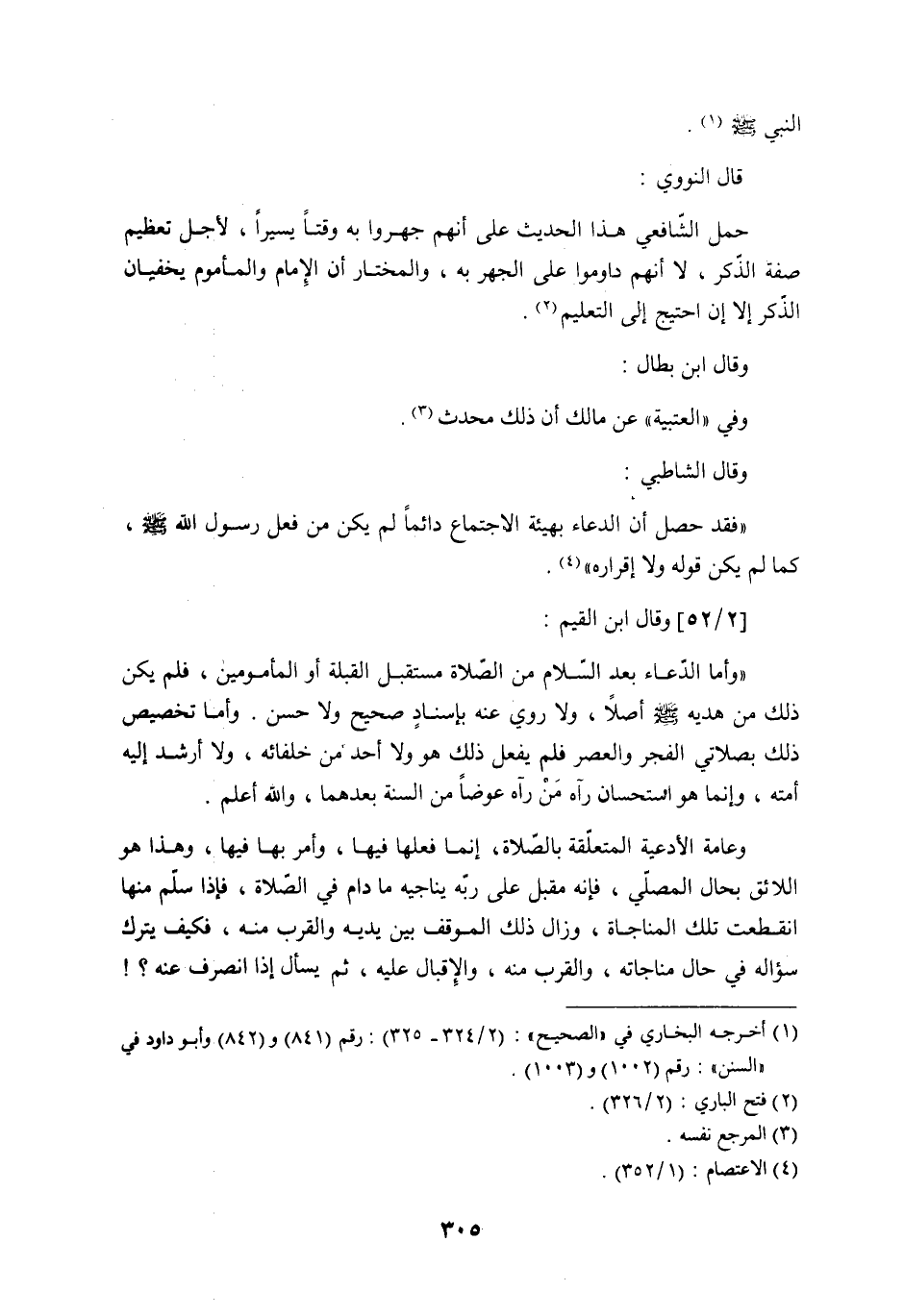 [2/52] وقال ابن القيم: ((وأما الدّعاء بعد السلاّم من الصّلاة مستقبل القبلة أو المأمومين فلم يكن ذلك من هديه - صلى الله عليه وسلم -، أصلاً، ولا روي عنه بإسنادٍ صحيح ولا حسن.