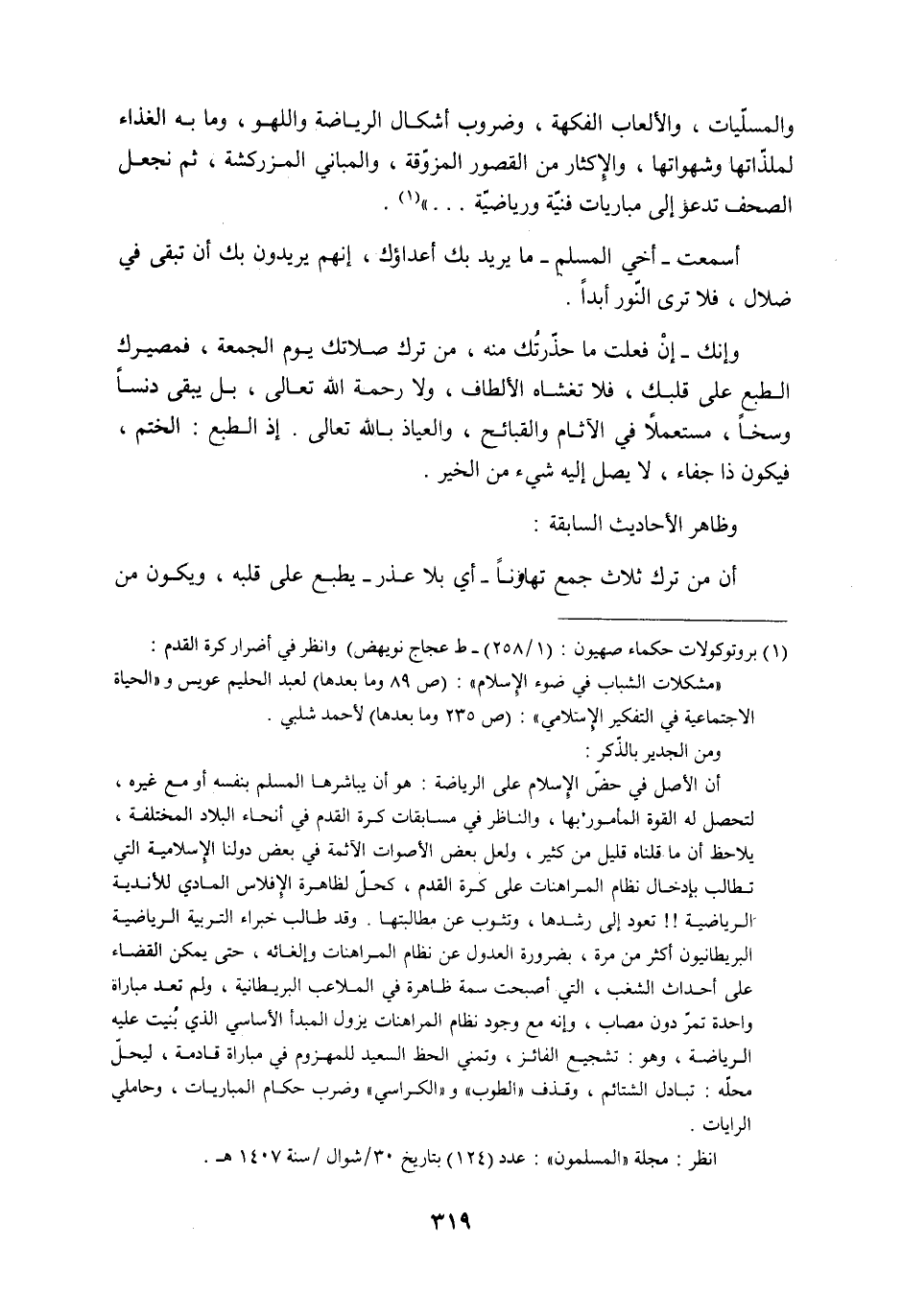 والمسلّيات، والألعاب الفكهة، وضروب أشكال الرياضة واللهو، وما به الغذاء لملذّاتها وشهواتها، والإِكثار من القصور المزوّقة والمباني المزركشة، ثم نجعل الصحف تدعو إلى مباريات فنيّة ورياضيّة ... )) (1) .