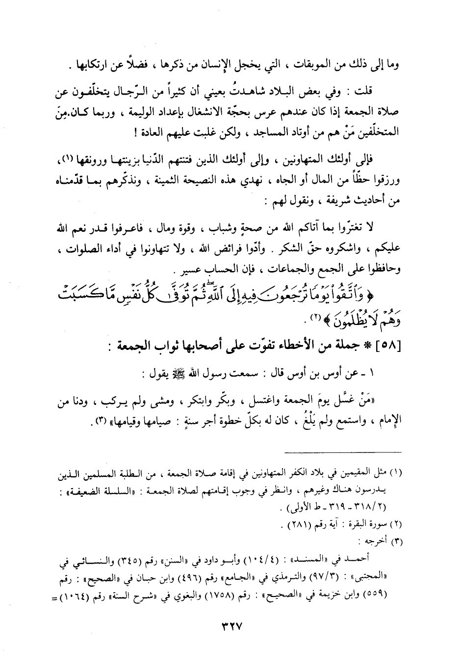 [58] * جملة من الأخطاء تفوّت على أصحابها ثواب الجمعة: