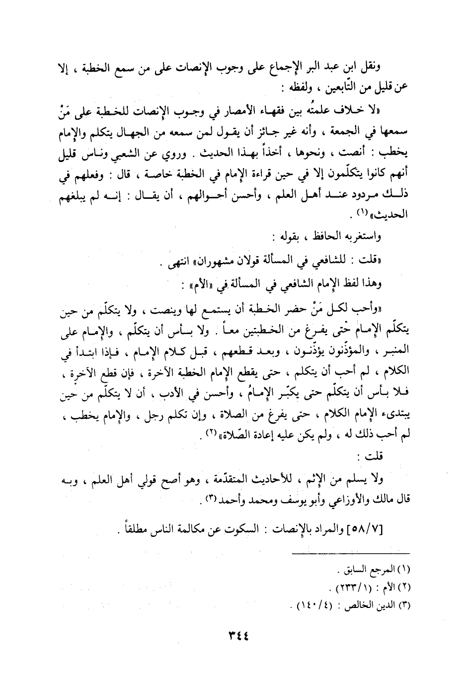 [7/58] والمراد بالإنصات: السكوت عن مكالمة الناس مطلقاً.