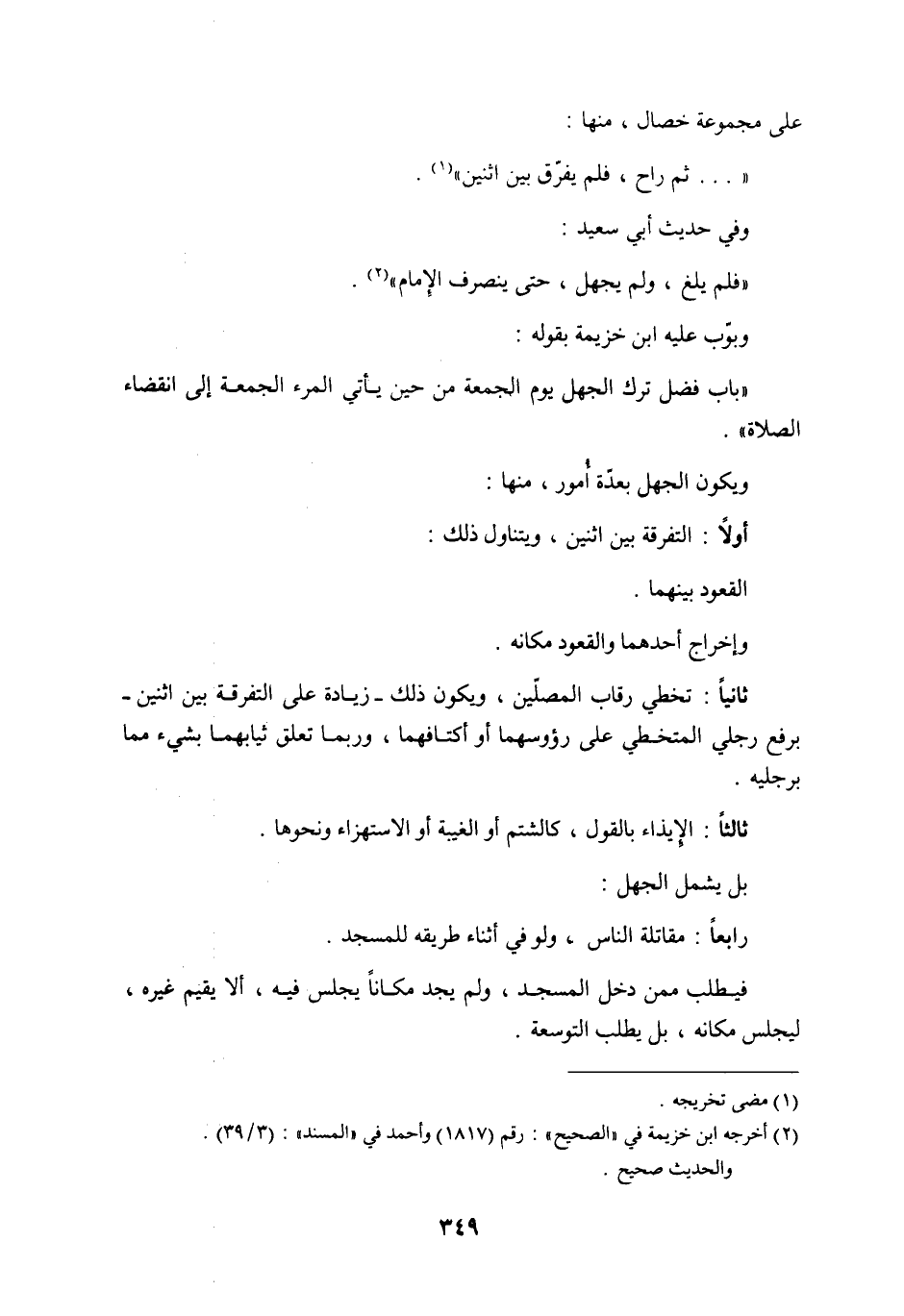 وبوّب عليه ابن خزيمة بقوله: ((باب فضل ترك الجهل يوم الجمعة من حين يأتي المرء