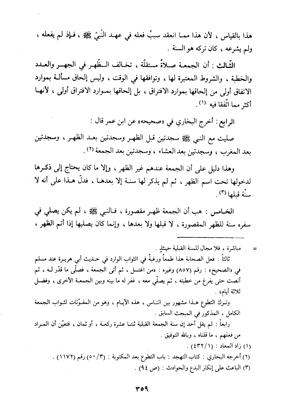 الثّالث: أن الجمعة صلاةٌ مستقلّة، تخالف الظّهر في الجهر والعدد والخطبة، والشروط المعتبرة لها، وتوافقها في الوقت، وليس إلحاق مسألة بموارد الاتفاق أولى من إلحاقها بموارد الافتراق، بل إلحاقها بموارد الافتراق أولى،لأنها أكثر مما اتّفقا فيه (1) .