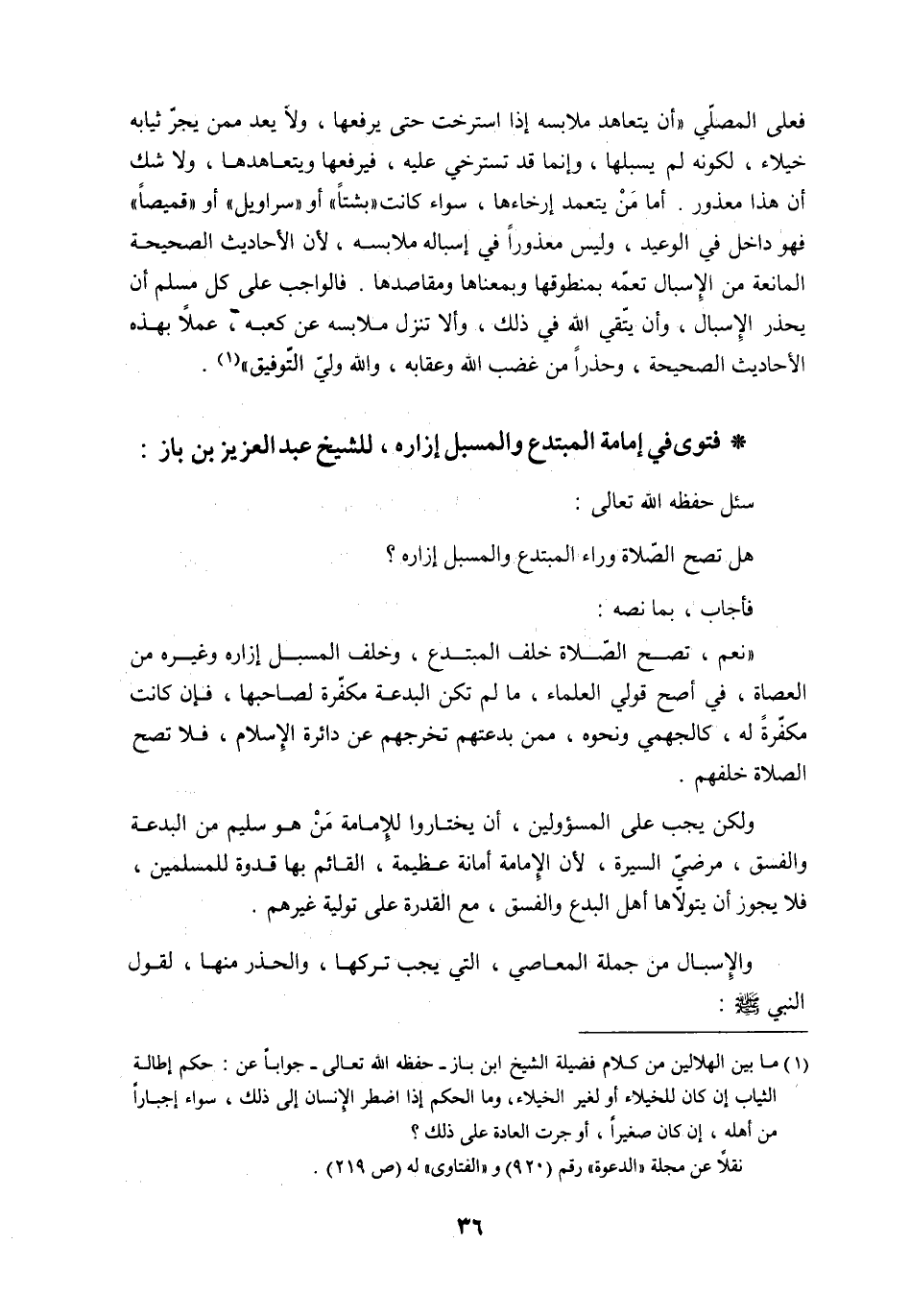 * فتوى في إمامة المبتدع والمسبل إزاره، للشيخ عبد العزيز بن باز: