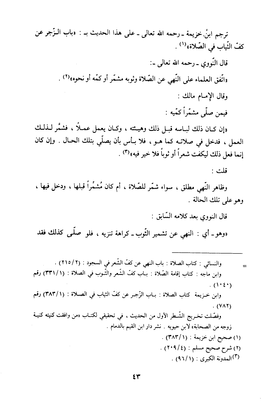 قال النووي ـ رحمه الله تعالى ـ ((اتّفق العلماء على النّهي عن الصّلاة وثوبه مشمّر أو كمّه أو نحوه)) (¬2)