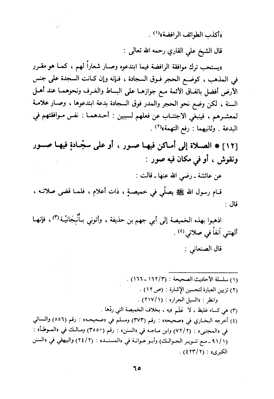 [12] * الصلاة إلى أماكن فيها صور، أو على سجّادةٍ فيها صور ونقوش، أو في مكان فيه صور: