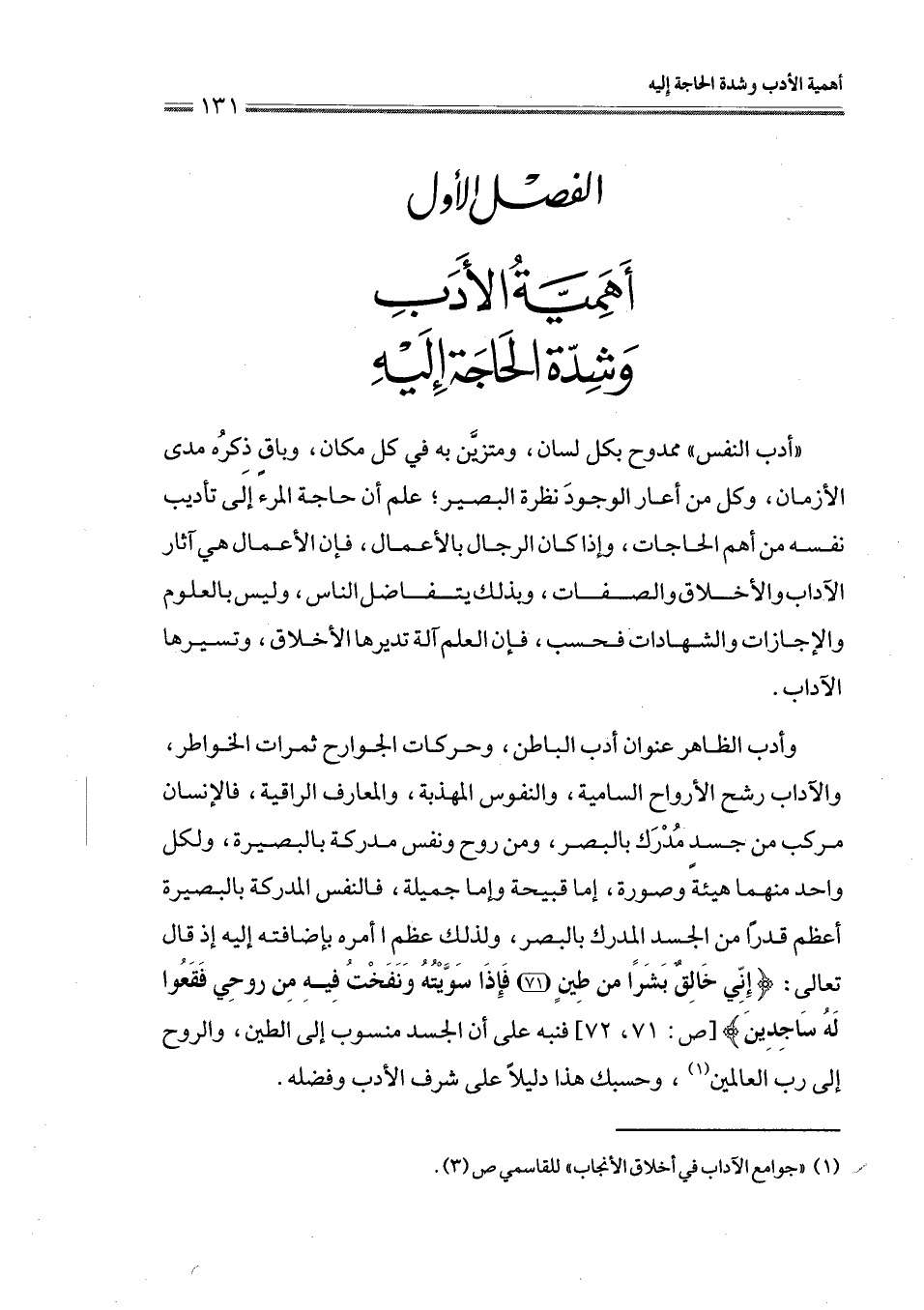 (¬1) " جوامع الآداب في أخلاق الأنجاب " للقاسمي ص (3).