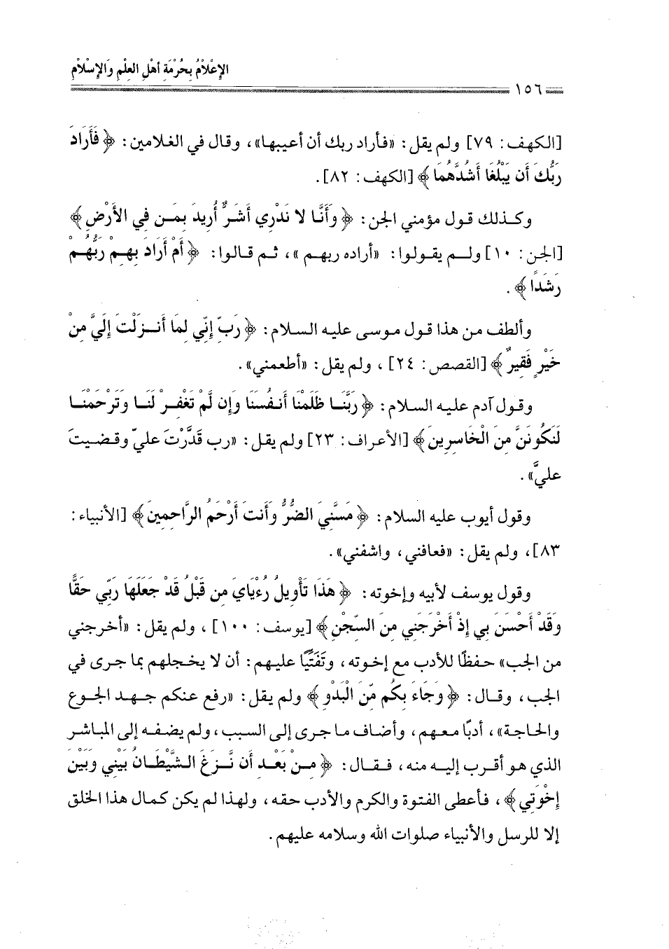[الكهف:79]، ولم يقل: " فأراد ربك أن أعيبها "، وقال في الغلامين: {فَأَرَادَ رَبُّكَ أَنْ يَبْلُغَا أَشُدَّهُمَا} [الكهف: 82] ".