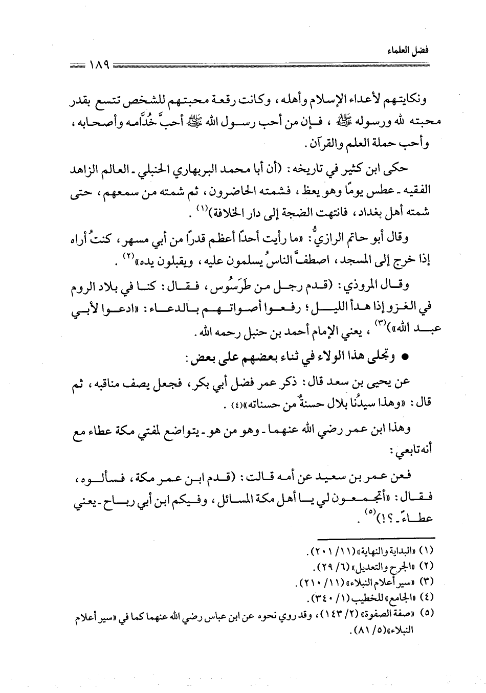 ونكايتهم لأعداء الإسلام وأهله، وكانت رقعة محبتهم للشخص تتسع بقدر محبته لله ورسوله - صلى الله عليه وسلم -، فإن من أحب رسول الله - صلى الله عليه وسلم - أحبَّ خُدَّامه وأصحابه، وأحب حملة العلم والقرآن.