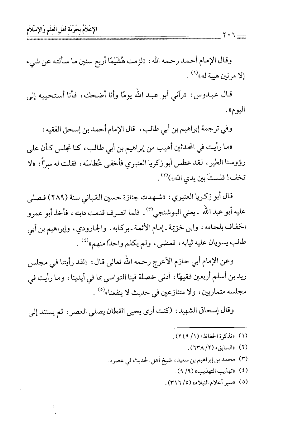وفي ترجمة إبراهيم بن أبي طالب، قال الإمام أحمد بن إسحاق الفقيه: