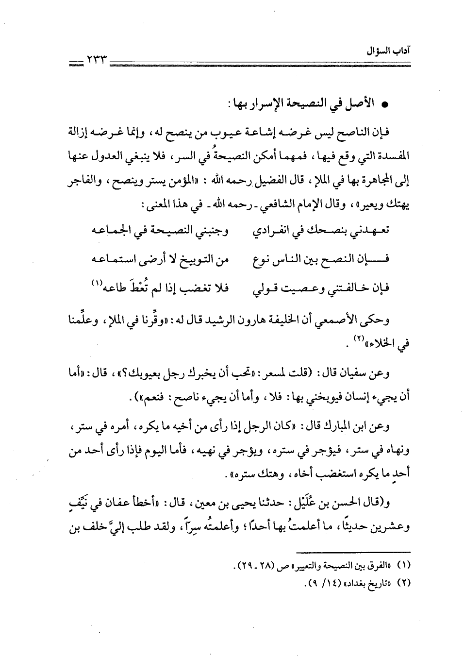 (¬1) " الفرق بين النصيحة والتعيير " ص (28 - 29).