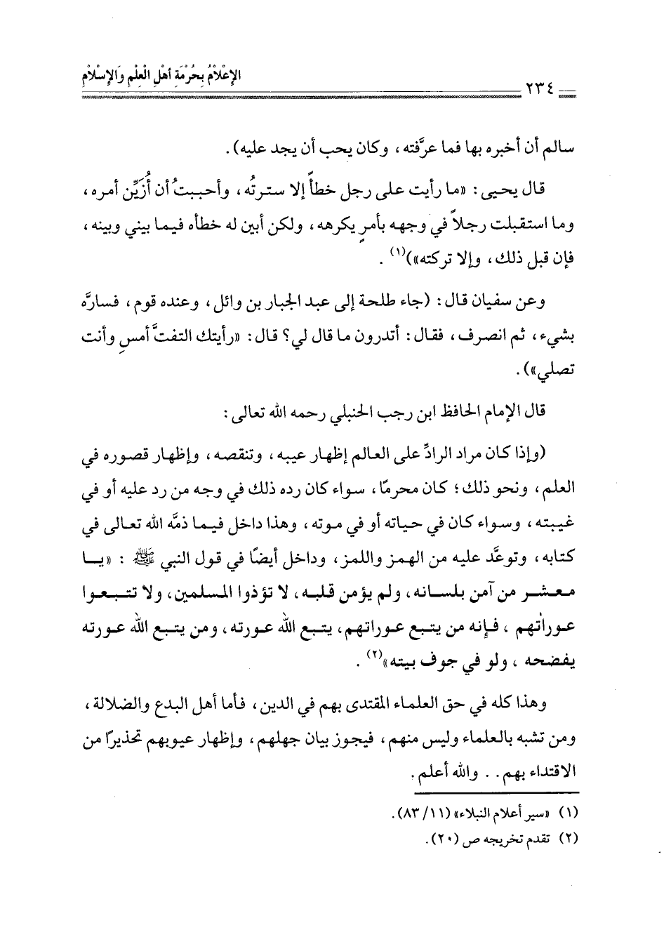 وهذا كله في حق العلماء المقتدى بهم في الدين، فأما أهل البدع والضلالة، ومن تشبه بالعلماء وليس منهم، فيجوز بيان جهلهم، وإظهار عيوبهم تحذيرًا من الاقتداء بهم .. والله أعلم.