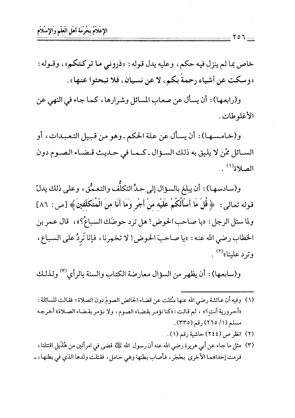 وسابعها: أن يظهر من السؤال معارضة الكتاب والسنة بالرأي (¬3) ولذلك