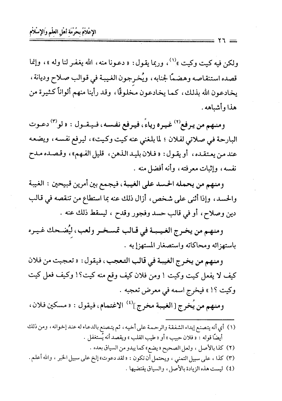 ومنهم من يخرج الغيبة في قالب تمسخر ولعب، لِيُضحك غيره باستهزائه ومحاكاته واستصغار المستهزإ به.
