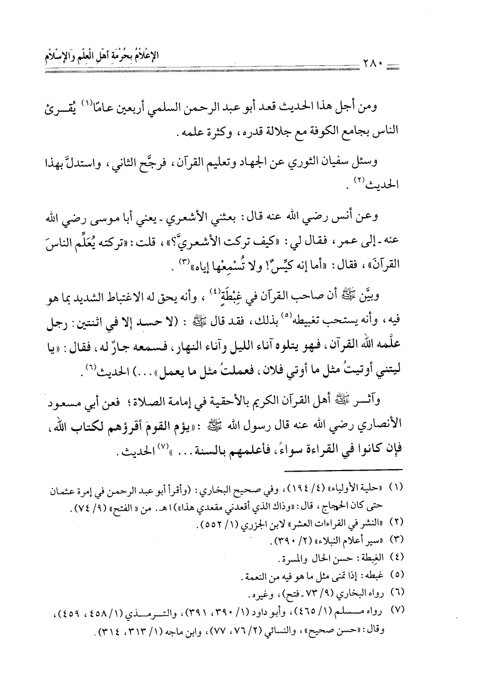 (¬1) " حلية الأولياء " (4/ 194)، وفي صحيح البخاري: (وأقرأ أبو عبد الرحمن في إمرة عثمان حتى كان الحجاج، قال: " وذاك الذي أقعدني مقعدي هذا ") اهـ. من " الفتح " (9/ 74).