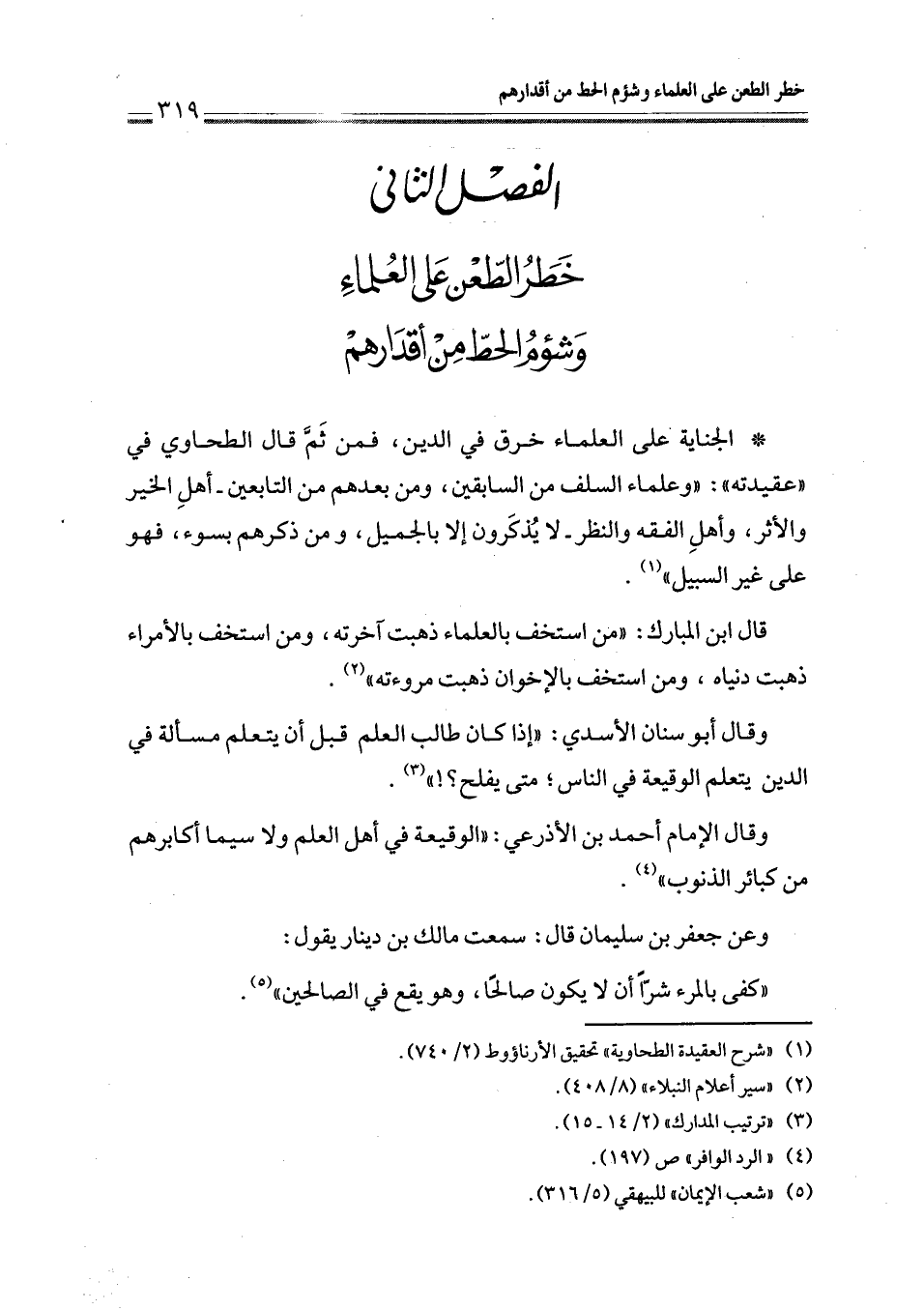 خطر الطعن علي العلماء وشؤم الحط من أقدارهم