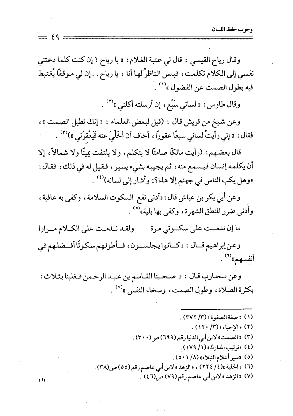 (¬3) " الصمت " لابن أبي الدنيا رقم (699) ص (300).
