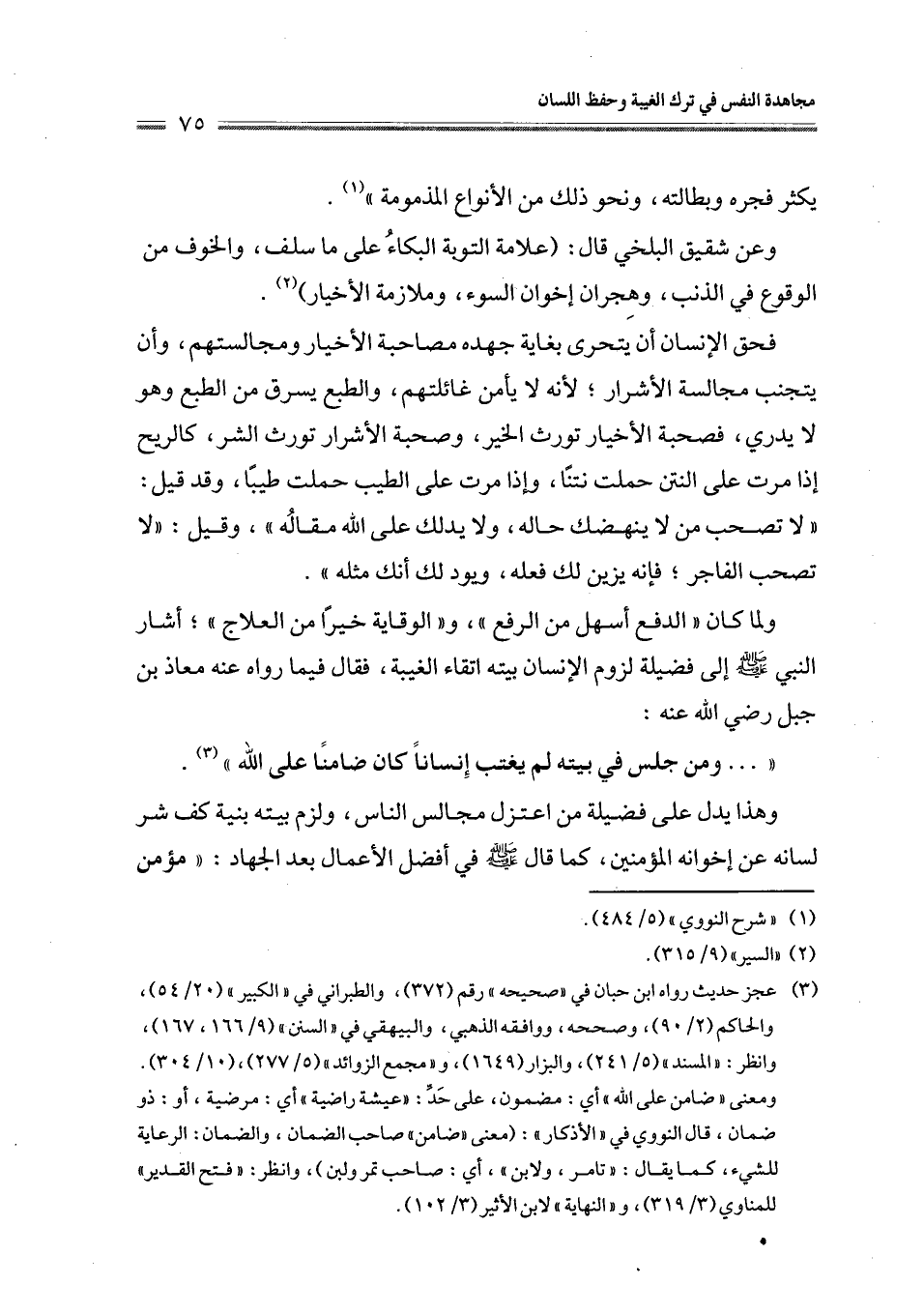" ... ومن جلس في بيته لم يغتب إِنسانًا كان ضامنًا على الله " (¬3).