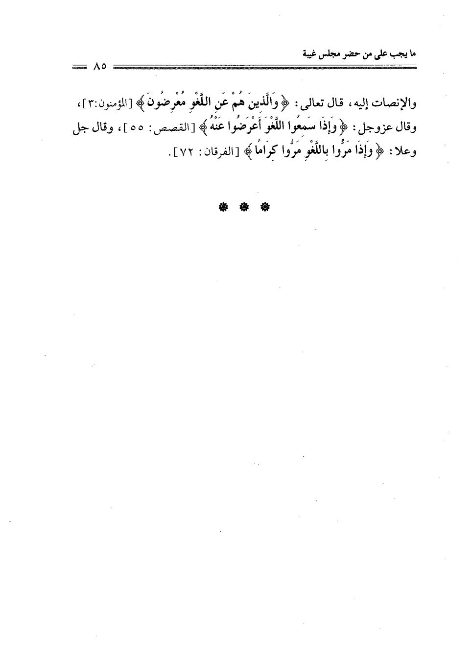 وقال عز وجل: {وَإِذَا سَمِعُوا اللَّغْوَ أَعْرَضُوا عَنْهُ} [القصص: 55]، وقال جل