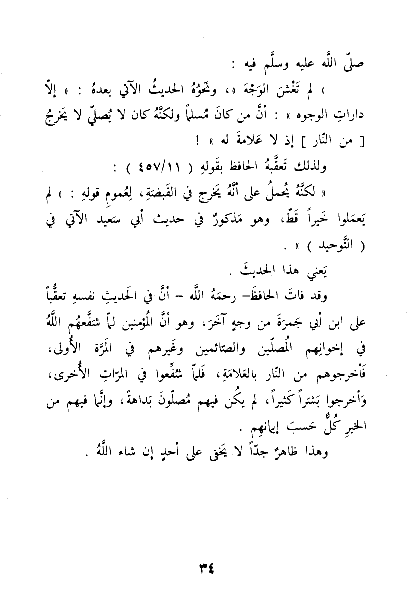 وعلى ذلك فالحديث دليل قاطع على أن تارك الصلاة إذا مات مسلما يشهد أن لا إله إلا الله: أنه لا يخلد في النار مع المشركين