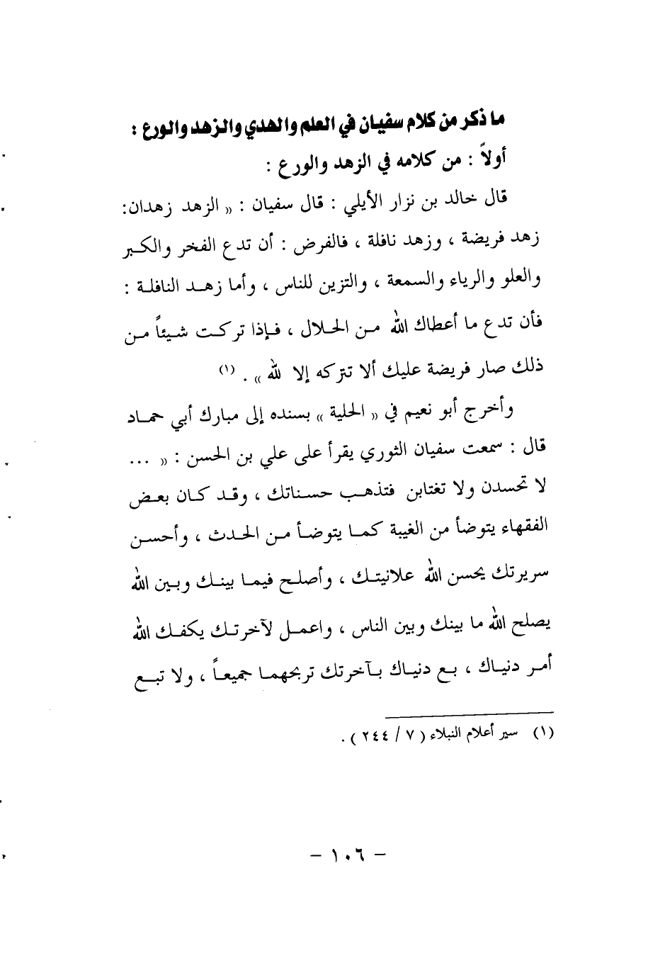 ما ذكر من كلام سفيان في العلم والهدي والزهد والورع:
