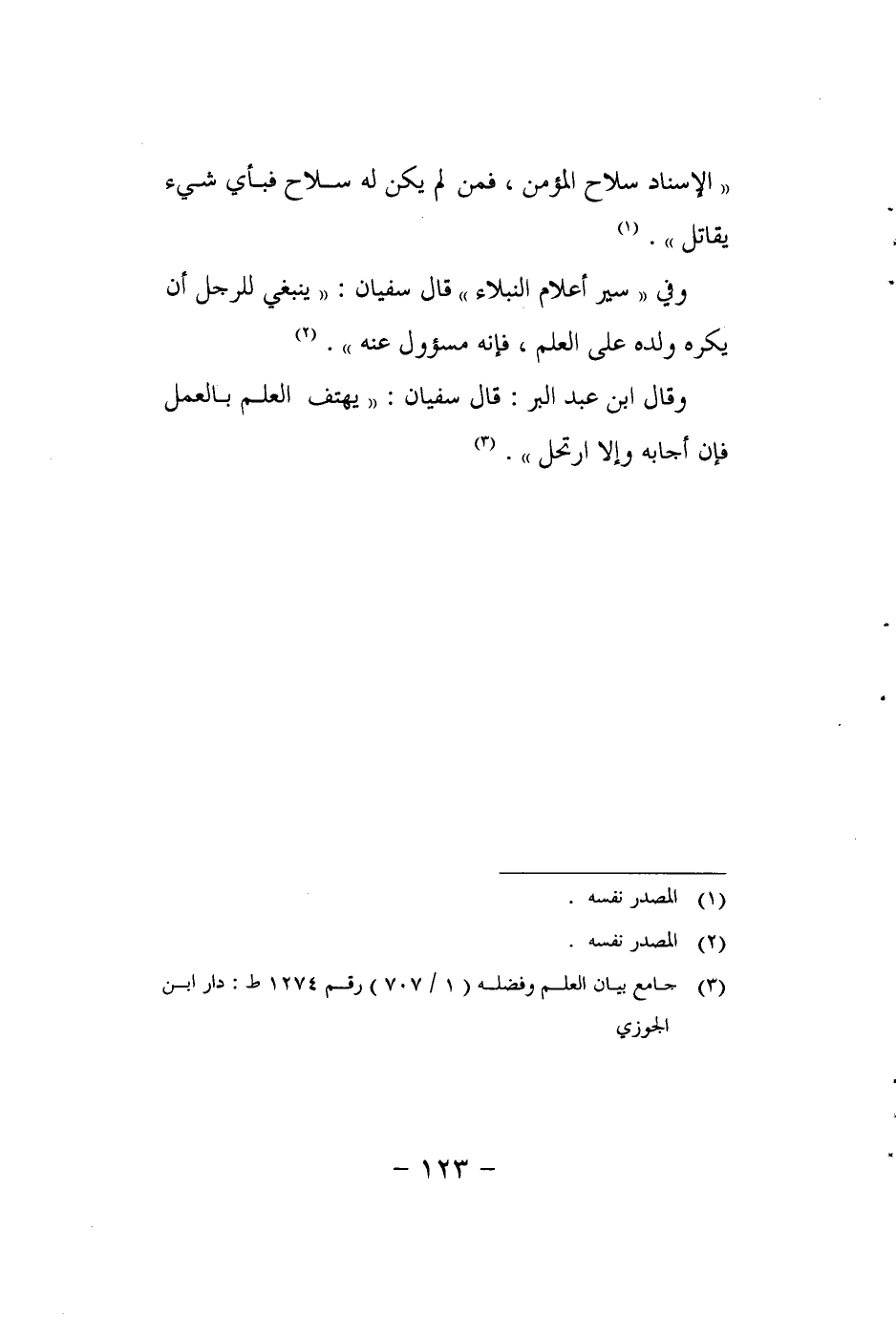 "الإسناد سلاح المؤمن، فمن لم يكن له سلاح فبأي شيء يقاتل". 1