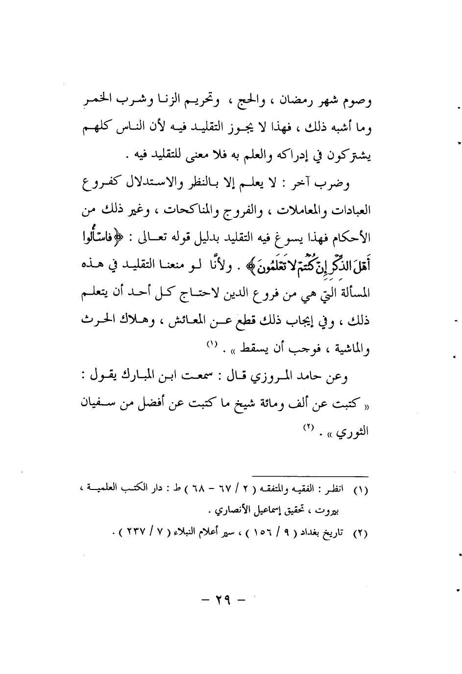 1انظر: الفقيه والمتفقه (2/ 67 - 68) ط: دار الكتب العلمية، بيروت، تحقيق إسماعيل الأنصاري.