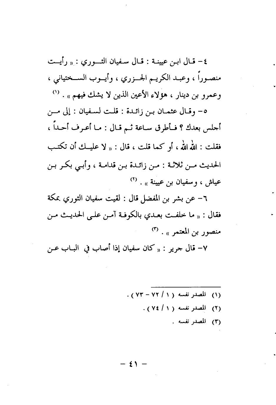 7 - قال جرير: "كان سفيان إذا أصاب في الباب عن