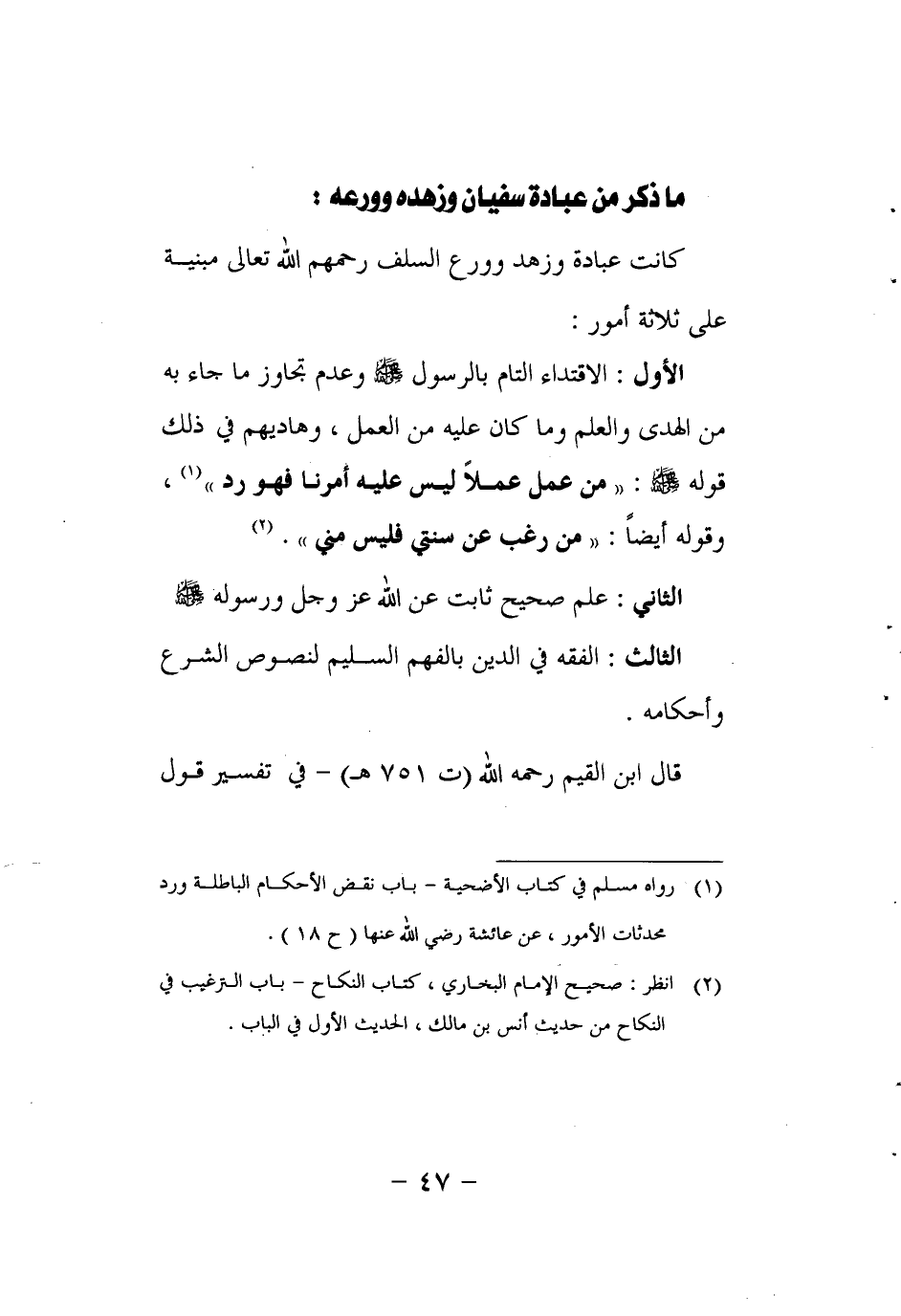 كانت عبادة وزهد وورع السلف رحمهم الله تعالى مبنية على ثلاثة أمور: