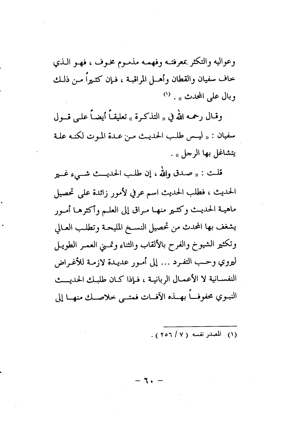 وقال رحمه الله في "التذكرة" تعليقاً أيضاً على قول سفيان: "ليس طلب الحديث من عدة الموت لكنه علة يتشاغل بها الرجل".