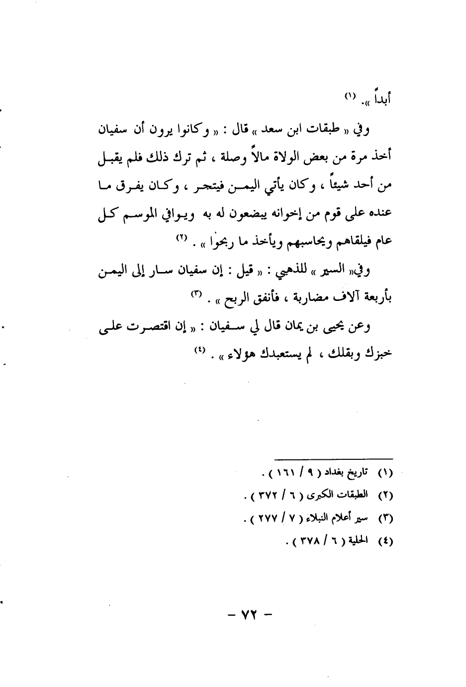 وفي"السير" للذهبي: "قيل: إن سفيان سار إلى اليمن بأربعة آلاف مضاربة، فأنفق الربح". 3