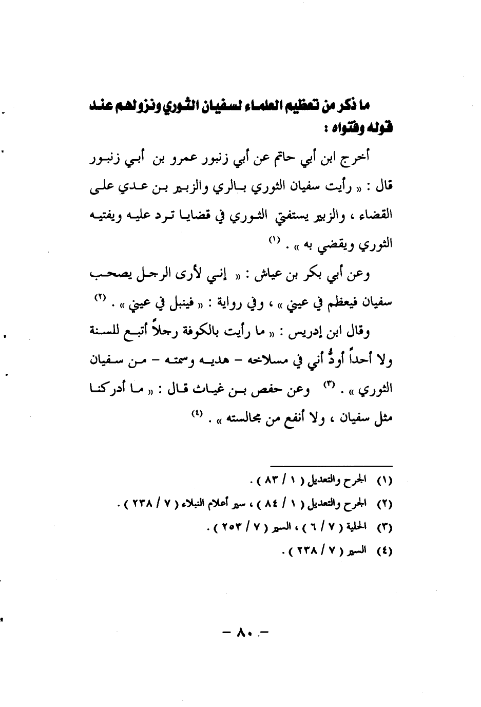 ما ذكر من تعظيم العلماء لسفيان الثوري ونزولهم عند قوله وفتواه: