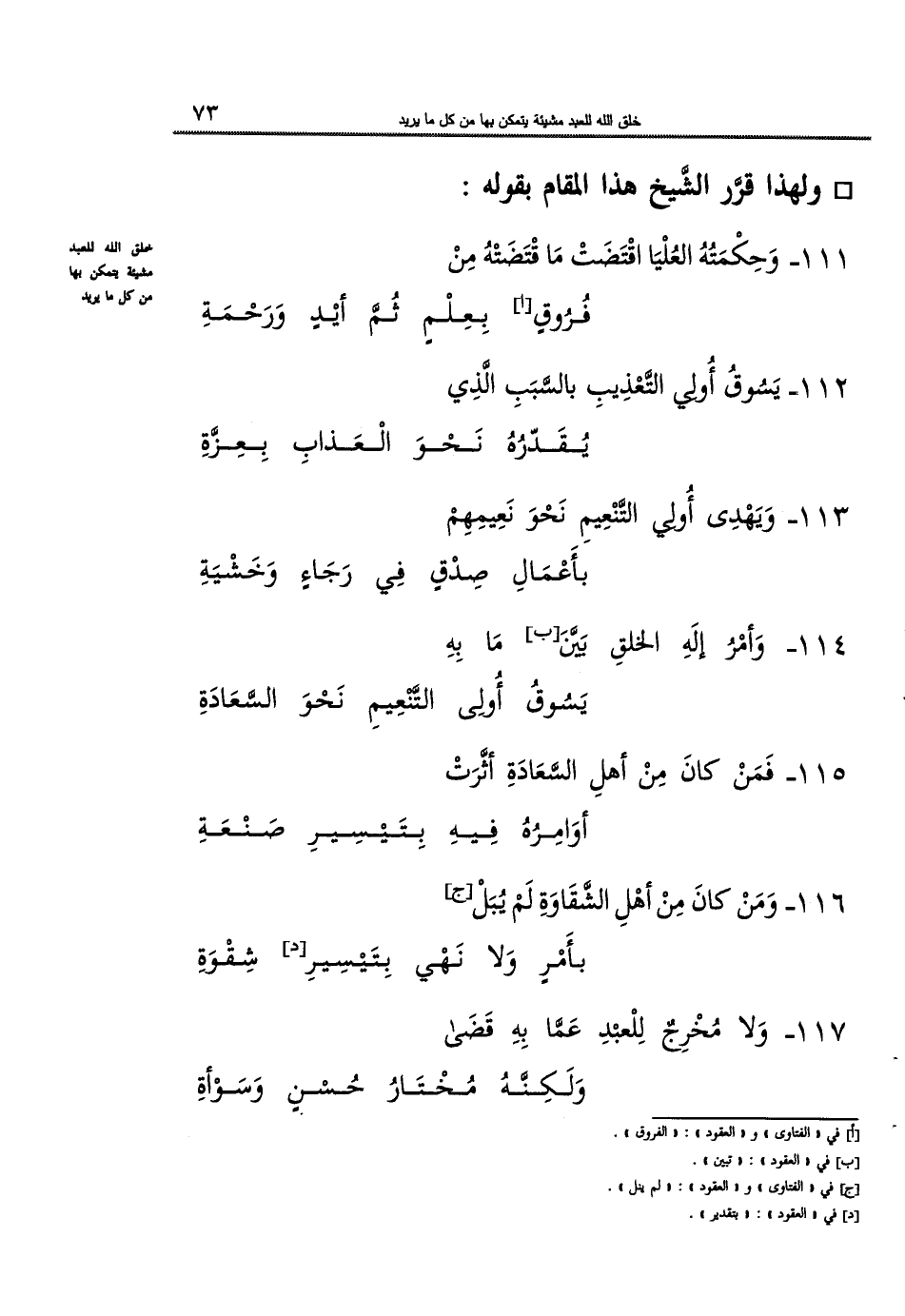 111- وحكمته العليا اقتضت ما اقتضت ... فروق1 بعلم ثم أيد ورحمة