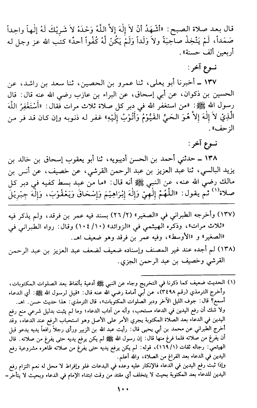 111 - أَخْبَرَنَا أَبُو عَبْدِ الرَّحْمَنِ، أَخْبَرَنَا عَمْرُو بْنُ عَلِيٍّ، حَدَّثَنَا يَحْيَى بْنُ سَعِيدٍ، عَنْ عُثْمَانَ الشَّحَّامِ، عَنْ مُسْلِمِ بْنِ أَبِي بَكْرَةَ، قَالَ: " كَانَ أَبِي §يَقُولُ فِي دُبُرِ كُلِّ الصَّلَاةِ: «اللَّهُمَّ إِنِّي أَعُوذُ بِكَ مِنَ الْكُفْرِ وَالْفَقْرِ، وَعَذَابِ الْقَبْرِ» وَكُنْتُ أَقُولُهُنَّ، فَقَالَ لِي أَبِي: أَيْ بُنَيَّ، عَمَّنْ أَخَذْتَ هَذَا؟ قُلْتُ: عَنْكَ. قَالَ: إِنَّ رَسُولَ اللَّهِ صَلَّى اللهُ عَلَيْهِ وَسَلَّمَ كَانَ يَقُولُهُنَّ فِي دُبُرِ كُلِّ صَلَاةٍ "