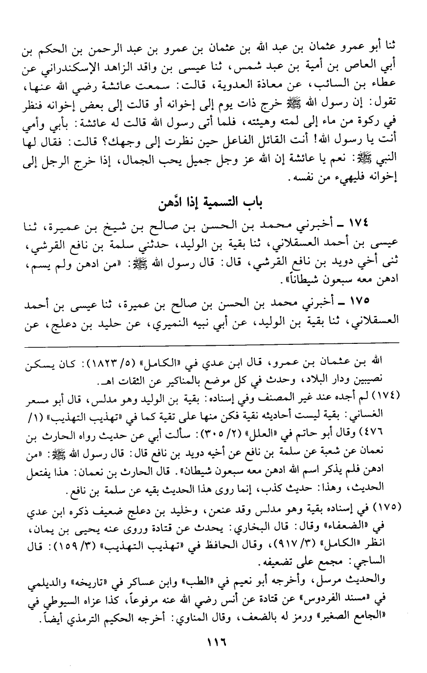 133 - حَدَّثَنَا مُحَمَّدُ بْنُ هَارُونَ الْحَضْرَمِيُّ، ثنا رِزْقُ اللَّهِ بْنُ سَلَّامٍ الْمَرْوَزِيُّ، ثنا مُحَمَّدُ بْنُ خَالِدٍ الْحَبَطِيُّ، ثنا عَبْدُ اللَّهِ بْنُ الْعَلَاءِ الْبَصْرِيُّ، عَنْ نَافِعِ بْنِ عَبْدِ اللَّهِ السُّلَمِيِّ، عَنْ عَطَاءٍ، عَنِ ابْنِ عَبَّاسٍ، رَضِيَ اللَّهُ عَنْهُمَا قَالَ: بَيْنَمَا نَحْنُ عِنْدَ رَسُولِ اللَّهِ صَلَّى اللهُ عَلَيْهِ وَسَلَّمَ، إِذْ أَقْبَلَ شَيْخٌ يُقَالُ لَهُ قَبِيصَةُ، فَقَالَ لَهُ رَسُولُ اللَّهِ صَلَّى اللهُ عَلَيْهِ وَسَلَّمَ: «مَا جَاءَ بِكَ، وَقَدْ كَبِرَتْ سِنُّكَ، وَرَقَّ عَظْمُكَ» ؟ . فَقَالَ: يَا رَسُولَ اللَّهِ، كَبِرَتْ سِنِّي، وَدَقَّ عَظْمِي، وَضَعُفَتْ قُوَّتِي، وَاقْتَرَبَ أَجْلِي. فَقَالَ: «أَعِدْ عَلَيَّ قَوْلَكَ» . فَأَعَادَ عَلَيْهِ، ثُمَّ قَالَ رَسُولُ اللَّهِ صَلَّى اللهُ عَلَيْهِ وَسَلَّمَ -[117]-: «مَا بَقِيَ حَوْلَكَ شَجَرٌ، وَلَا حَجَرٌ، وَلَا مَدَرٌ، إِلَّا بَكَى رَحْمَةً لِقَوْلِكَ، فَهَاتِ حَاجَتَكَ، فَقَدْ وَجَبَ حَقُّكَ» . فَقَالَ: يَا رَسُولَ اللَّهِ، عَلِّمْنِي شَيْئًا يَنْفَعُنِي اللَّهُ بِهِ فِي الدُّنْيَا وَالْآخِرَةِ، وَلَا تُكْثِرْ عَلَيَّ؛ فَإِنِّي شَيْخٌ نَسِيُّ. قَالَ: " أَمَّا لِدُنْيَاكَ، §فَإِذَا صَلَّيْتَ الصُّبْحَ فَقُلْ بَعْدَ صَلَاةِ الصُّبْحِ: سُبْحَانَ اللَّهِ الْعَظِيمِ وَبِحَمْدِهِ، وَلَا حَوْلَ وَلَا قُوَّةَ إِلَّا بِاللَّهِ، ثَلَاثَ مَرَّاتٍ، يُوقِيكَ اللَّهُ مِنْ بَلَايَا أَرْبَعٍ: مِنَ الْجُذَامِ، وَالْجُنُونِ، وَالْعَمَى، وَالْفَالِجِ. فَأَمَّا لِآخِرَتِكَ، فَقُلِ: اللَّهُمَّ اهْدِنِي مِنْ عِنْدِكَ، وَأَفِضْ عَلَيَّ مِنْ فَضْلِكَ، وَانْشُرْ عَلَيَّ مِنْ رَحْمَتِكَ، وَأَنْزِلْ عَلَيَّ مِنْ بَرَكَاتِكَ ". فَقَالَهَا الشَّيْخُ، وَعَقَدَ أَصَابِعَهُ الْأَرْبَعَ، فَقَالَ أَبُو بَكْرٍ، وَعُمَرُ: خَالُكَ هَذَا يَا رَسُولَ اللَّهِ، مَا أَشَدَّ مَا ضَمَّ عَلَى أَصَابِعِهِ الْأَرْبَعِ. فَقَالَ رَسُولُ اللَّهِ صَلَّى اللهُ عَلَيْهِ وَسَلَّمَ: «وَالَّذِي نَفْسِي بِيَدِهِ، لَئِنْ وَفَّى بِهِنَّ يَوْمَ الْقِيَامَةِ لَمْ يَدَعْهُنَّ، لَيُفْتَحَنَّ لَهُ أَرْبَعَةُ أَبْوَابٍ مِنَ الْجَنَّةِ، يَدْخُلُ مِنْ أَيِّهَا شَاءَ»