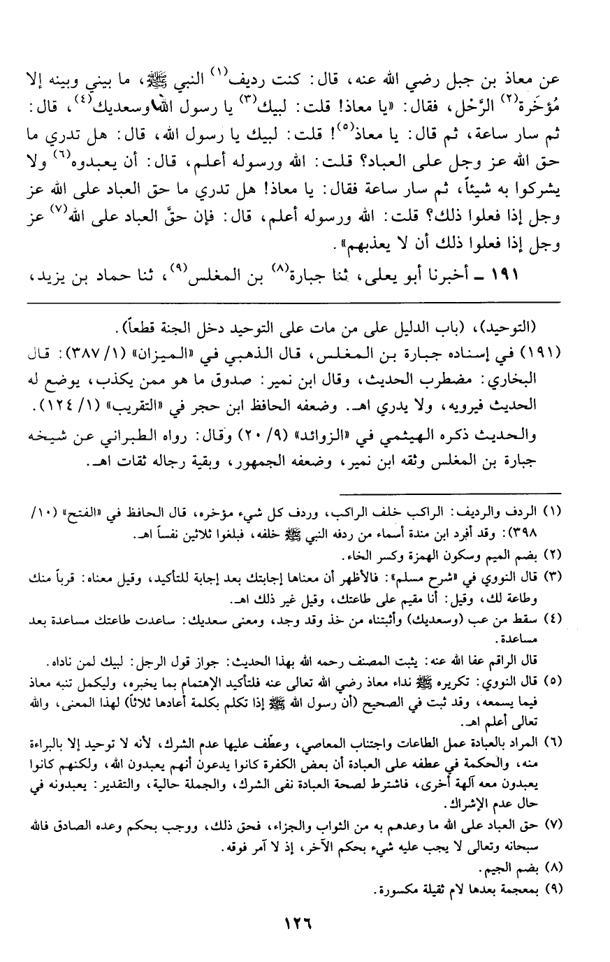144 - أَخْبَرَنَا أَبُو يَعْلَى، ثنا الْحَكَمُ بْنُ مُوسَى، ثنا بَقِيَّةُ بْنُ الْوَلِيدِ، ثنا أَبُو الْحَجَّاجِ الْمَهْرِيُّ، عَنْ زَبَّانَ بْنِ فَايِدٍ، عَنْ سَهْلِ بْنِ مُعَاذٍ، عَنْ أَبِيهِ، رَضِيَ اللَّهُ عَنْهُ قَالَ: قَالَ رَسُولُ اللَّهِ صَلَّى اللهُ عَلَيْهِ وَسَلَّمَ: «§مَنْ صَلَّى صَلَاةَ الْفَجْرِ، ثُمَّ قَعَدَ يَذْكُرُ اللَّهَ عَزَّ وَجَلَّ حَتَّى تَطْلُعَ الشَّمْسُ وَجَبَتْ لَهُ الْجَنَّةُ»