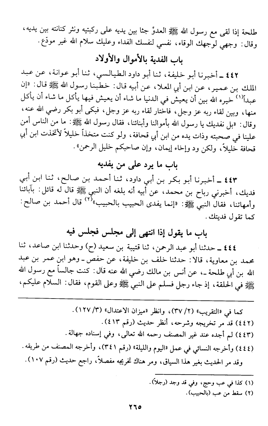 306 - حَدَّثَنِي جَعْفَرُ بْنُ عِيسَى الْحُلْوَانِيُّ، ثنا إِبْرَاهِيمُ بْنُ هَانِئٍ، ثنا أَبُو صَالِحٍ، ثنا يَحْيَى بْنُ أَيُّوبَ، عَنْ عَبْدِ اللَّهِ بْنِ سُلَيْمَانَ، حَدَّثَنِي دَرَّاجٌ، حَدَّثَنِي أَبُو الْهَيْثَمِ وَاسْمُهُ سُلَيْمَانُ بْنُ عَمْرِو بْنِ عَبْدِ الْعُتْوَارِيِّ عَنْ أَبِي سَعِيدٍ الْخُدْرِيِّ، رَضِيَ اللَّهُ عَنْهُ، أَوْ عَنِ ابْنِ حُجَيْرةَ الْأَكْبَرِ، عَنْ أَبِي هُرَيْرَةَ، رَضِيَ اللَّهُ عَنْهُ - أَوْ أَحَدِهِمَا - حَدَّثَهُ عَنْ رَسُولِ اللَّهِ صَلَّى اللهُ عَلَيْهِ وَسَلَّمَ قَالَ: " §إِذَا كَانَ يَوْمٌ حَارٌّ، فَقَالَ الرَّجُلُ: لَا إِلَهَ إِلَّا اللَّهُ، مَا أَشَدَّ حَرَّ هَذَا الْيَوْمِ، اللَّهُمَّ أَجِرْنِي مِنْ حَرِّ جَهَنَّمَ، قَالَ اللَّهُ عَزَّ وَجَلَّ لِجَهَنَّمَ: إِنَّ عَبْدًا مِنْ عِبَادِي اسْتَجَارَ بِي مِنْ حَرِّكِ فَاشْهَدِي أَنِّي أَجَرْتُهُ، وَإِنْ كَانَ يَوْمٌ شَدِيدُ الْبَرْدِ، فَإِذَا قَالَ الْعَبْدُ: لَا إِلَهَ إِلَّا اللَّهُ، مَا أَشَدَّ بَرْدَ هَذَا الْيَوْمِ، اللَّهُمَّ أَجِرْنِي مِنْ زَمْهَرِيرِ جَهَنَّمَ، قَالَ اللَّهُ عَزَّ وَجَلَّ لِجَهَنَّمَ: إِنَّ عَبْدًا مِنْ عِبَادِي قَدِ اسْتَجَارَنِي مِنْ زَمْهَرِيرِكِ، وَإِنِّي أُشْهِدُكِ أَنِّي قَدْ أَجَرْتُهُ ". قَالُوا: مَا زَمْهَرِيرُ جَهَنَّمَ؟ قَالَ: «بَيْتٌ يُلْقَى فِيهِ الْكَافِرُ، فَيَتَمَيَّزُ مِنْ شِدَّةِ بَرْدِهَا بَعْضُهُ مِنْ بَعْضٍ»