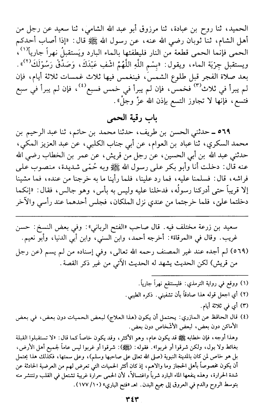 386 - أَخْبَرَنَا أَبُو عَبْدِ الرَّحْمَنِ، حَدَّثَنَا إِبْرَاهِيمُ بْنُ يَعْقُوبَ، ثنا عَفَّانُ، ثنا عَبْدُ الْوَاحِدِ بْنُ زِيَادٍ، ثنا عُثْمَانُ بْنُ حَكِيمٍ، حَدَّثَتْنِي جَدَّتِي الرَّبَابُ، عَنْ سَهْلِ بْنِ حُنَيْفٍ، قَالَ: مَرَّ بِنَا سَيْلٌ، فَذَهَبْنَا نَغْتَسِلُ فِيهِ، فَخَرَجْتُ مِنْهُ مَحْمُومًا، فَنَمَى ذَلِكَ إِلَى رَسُولِ اللَّهِ صَلَّى اللهُ عَلَيْهِ وَسَلَّمَ، قَالَ -[344]-: «مُرُوا أَبَا ثَابِتٍ فَلْيَتَعَوَّذْ» . فَقُلْتُ: يَا سَيِّدِي، وَصَالِحَةٌ الرُّقَى؟ فَقَالَ: " §لَا رُقَى إِلَّا مِنْ ثَلَاثٍ: مِنَ الْحُمَةِ، وَالنَّفْسِ، وَاللَّدْغَةِ "