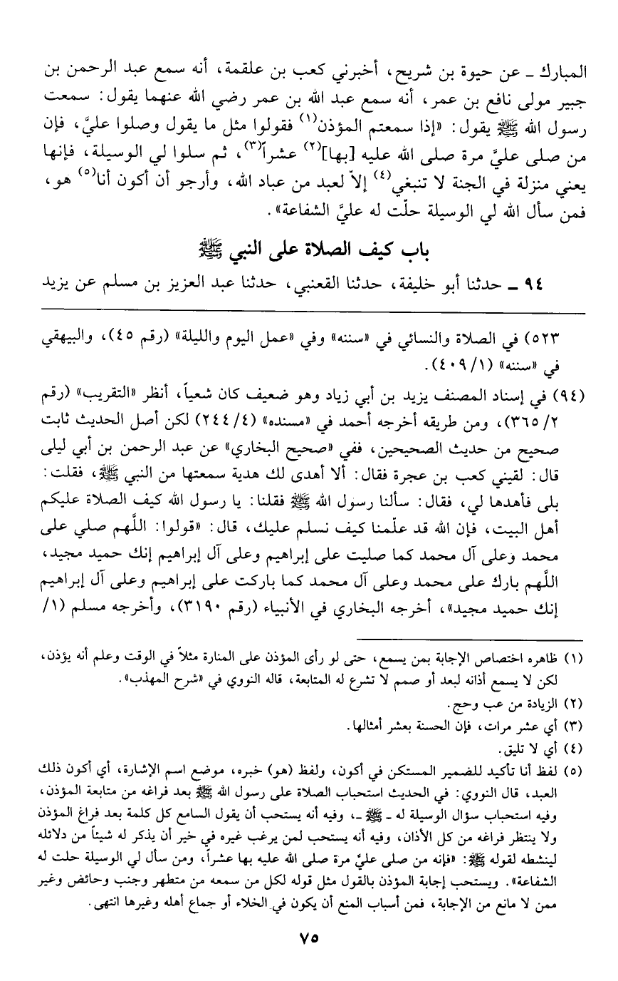 84 - حَدَّثَنَا ابْنُ مَنِيعٍ، حَدَّثَنَا الْحَسَنُ بْنُ عَرَفَةَ، حَدَّثَنَا عَلِيُّ بْنُ ثَابِتٍ الْجَزَرِيُّ، عَنِ الْوَازِعِ بْنِ نَافِعٍ الْعُقَيْلِيِّ، عَنْ أَبِي سَلَمَةَ بْنِ عَبْدِ الرَّحْمَنِ، عَنْ جَابِرِ بْنِ عَبْدِ اللَّهِ، عَنْ بِلَالٍ مُؤَذِّنِ رَسُولِ اللَّهِ صَلَّى اللهُ عَلَيْهِ وَسَلَّمَ قَالَ: كَانَ رَسُولُ اللَّهِ صَلَّى اللهُ عَلَيْهِ وَسَلَّمَ §إِذَا خَرَجَ إِلَى الصَّلَاةِ قَالَ -[76]-: «بِسْمِ اللَّهِ، آمَنْتُ بِاللَّهِ، تَوَكَّلْتُ عَلَى اللَّهِ، لَا حَوْلَ وَلَا قُوَّةَ إِلَّا بِاللَّهِ، اللَّهُمَّ بِحَقِّ السَّائِلِينَ عَلَيْكَ، وَبِحَقِّ مَخْرِجِي هَذَا، فَإِنِّي لَمْ أَخْرُجْهُ أَشَرًا وَلَا بَطَرًا وَلَا رِيَاءً وَلَا سُمْعَةً، خَرَجْتُ ابْتِغَاءَ مَرْضَاتِكَ، وَاتِّقَاءَ سَخَطِكَ، أَسْأَلُكَ أَنْ تُعِيذَنِي مِنَ النَّارِ، وَتُدْخِلَنِي الْجَنَّةَ»