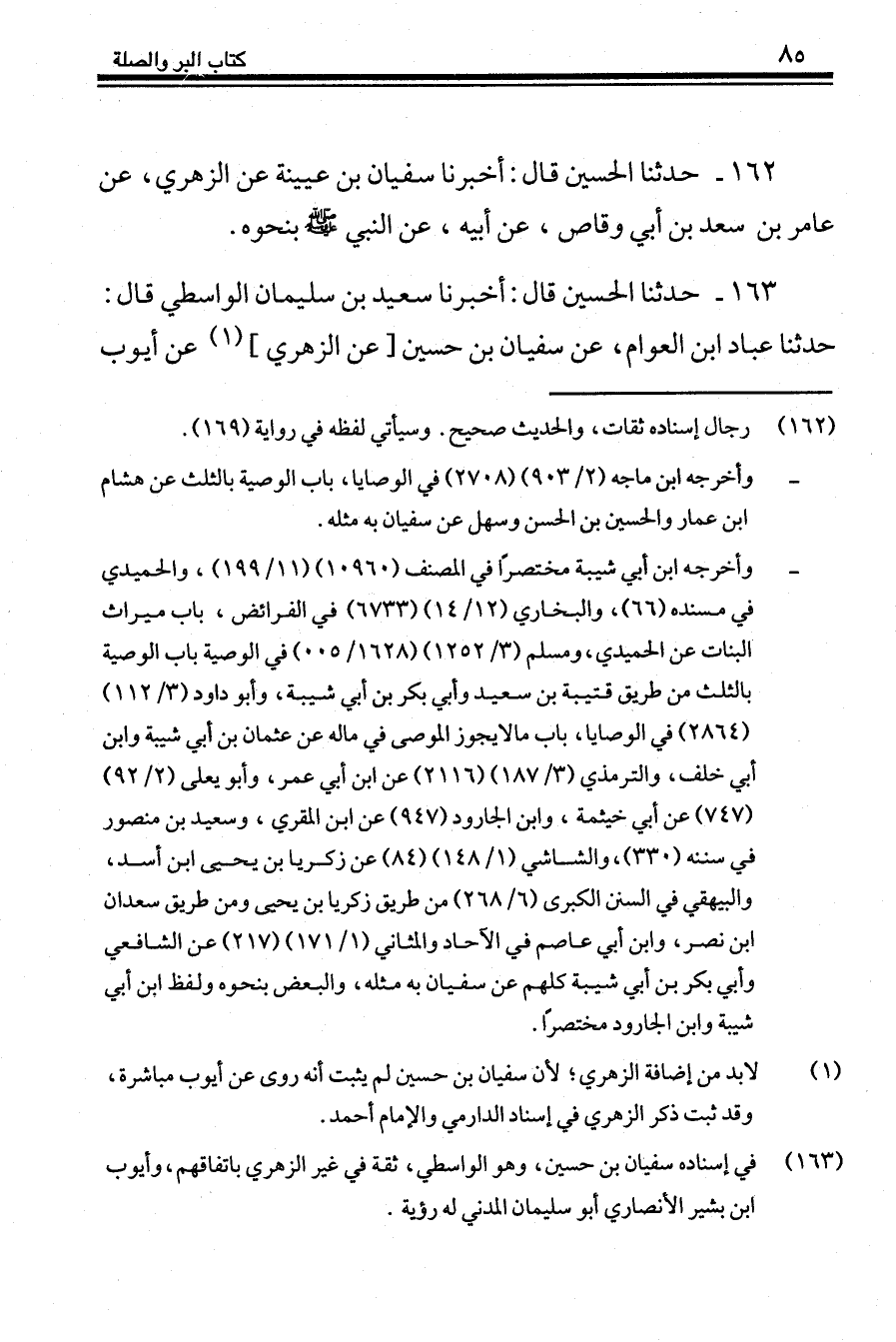 163 - حَدَّثَنَا الْحُسَيْنُ قَالَ: أَخْبَرَنَا سَعِيدُ بْنُ سُلَيْمَانَ الْوَاسِطِيُّ، قَالَ: حَدَّثَنَا عَبَّادُ بْنُ الْعَوَّامِ، عَنْ سُفْيَانَ بْنِ حُسَيْنٍ، عَنْ الزهري، عَنْ أَيُّوبَ -[86]- بْنِ بَشِيرٍ الْأَنْصَارِيِّ، عَنْ حَكِيمِ بْنِ حِزَامٍ، أَنَّ رَجُلًا سَأَلَ النَّبِيَّ صَلَّى اللهُ عَلَيْهِ وَسَلَّمَ عَنِ الصَّدَقَاتِ أَيُّهَا أَفْضَلُ؟ فَقَالَ: «§عَلَى ذِي الرَّحِمِ الْكَاشِحِ»