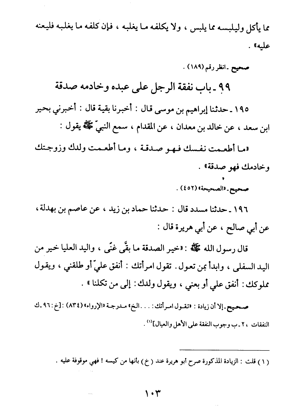 99- بَابُ نَفَقَةُ الرَّجُلِ عَلَى عَبْدِهِ وَخَادِمِهِ صَدَقَةٌ