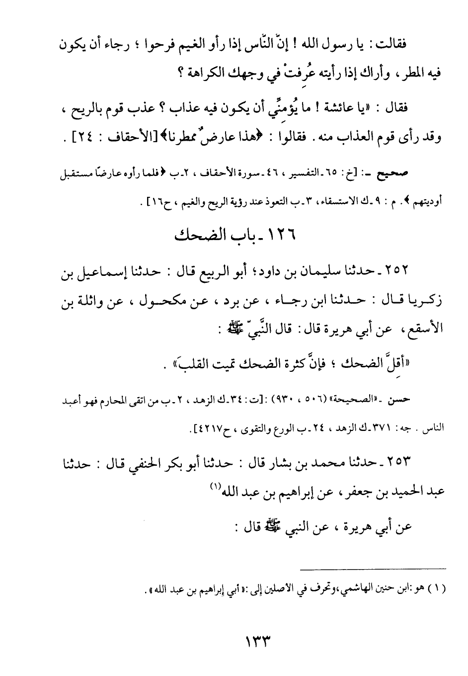 252 - عن أبى هريرة رضي الله عنه قَالَ: قَالَ النَّبِيُّ صَلَّى اللهُ عَلَيْهِ وَسَلَّمَ: أقِلَّ الضَّحِك، فَإن كَثْرَة الضَّحِكِ تُمِيتُ القَلْبَ)