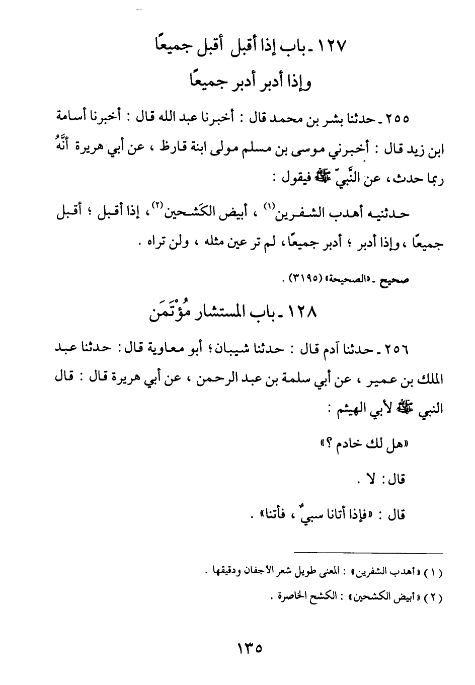 127- بَابُ إِذَا أَقْبَلَ أَقْبَلَ جَمِيعًا، وَإِذَا أَدْبَرَ أدبر جميعا