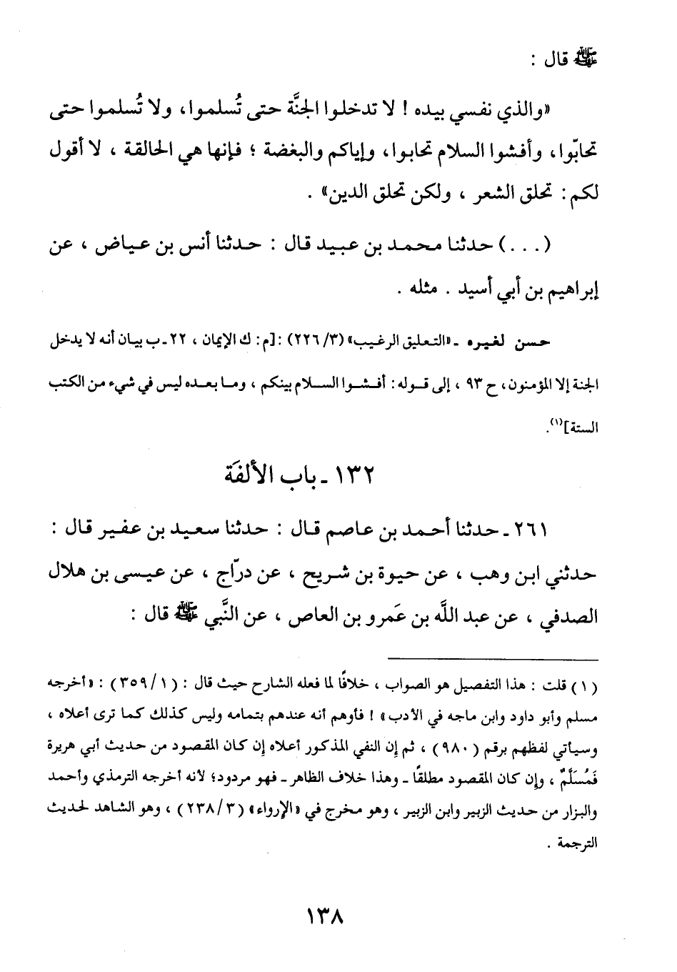 261 - عَنْ عَبْدِ اللَّهِ بْنِ عَمْرِو بْنِ الْعَاصِ رضي الله عنهما عَنِ النَّبِيِّ صَلَّى اللهُ عَلَيْهِ وَسَلَّمَ قَالَ: (إنَّ رُوحَيْ المُؤمِنَين لَيَلْتَقِيَان فِي مَسِيْرةِ يَومٍ، وَمَا رَأى أَحَدُهُمَا صَاحِبَهُ)