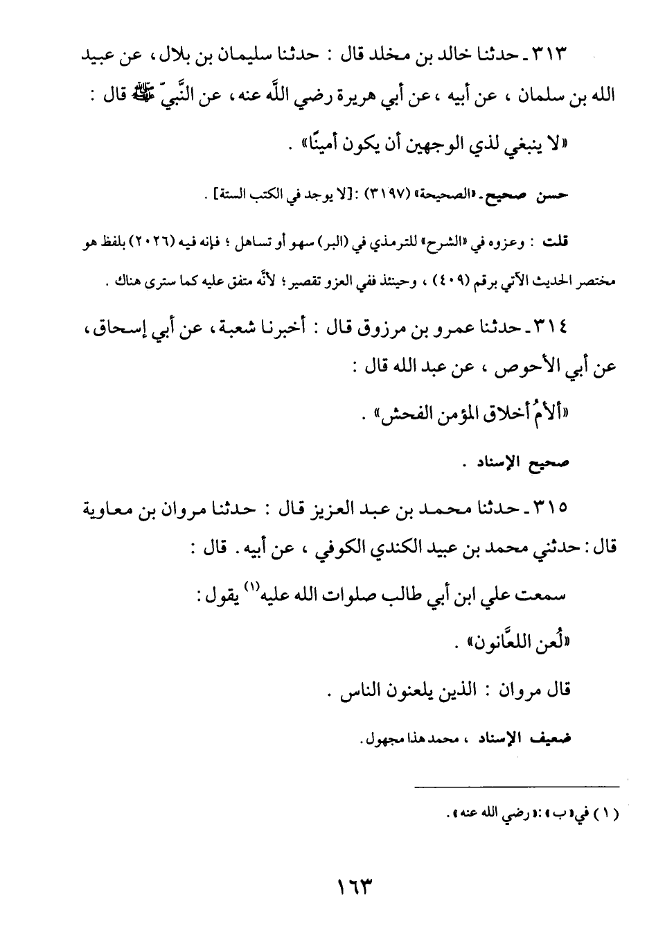 315 - (ث 73) عَنْ عَلِيِّ بْنِ أَبِي طَالِبٍ رَضِيَ اللَّهُ عنهما قال: لُعِنَ اللعَانُون. قَالَ: مَروانَ: (الَّذِينَ يَلَعنُونَ النَّاس.
