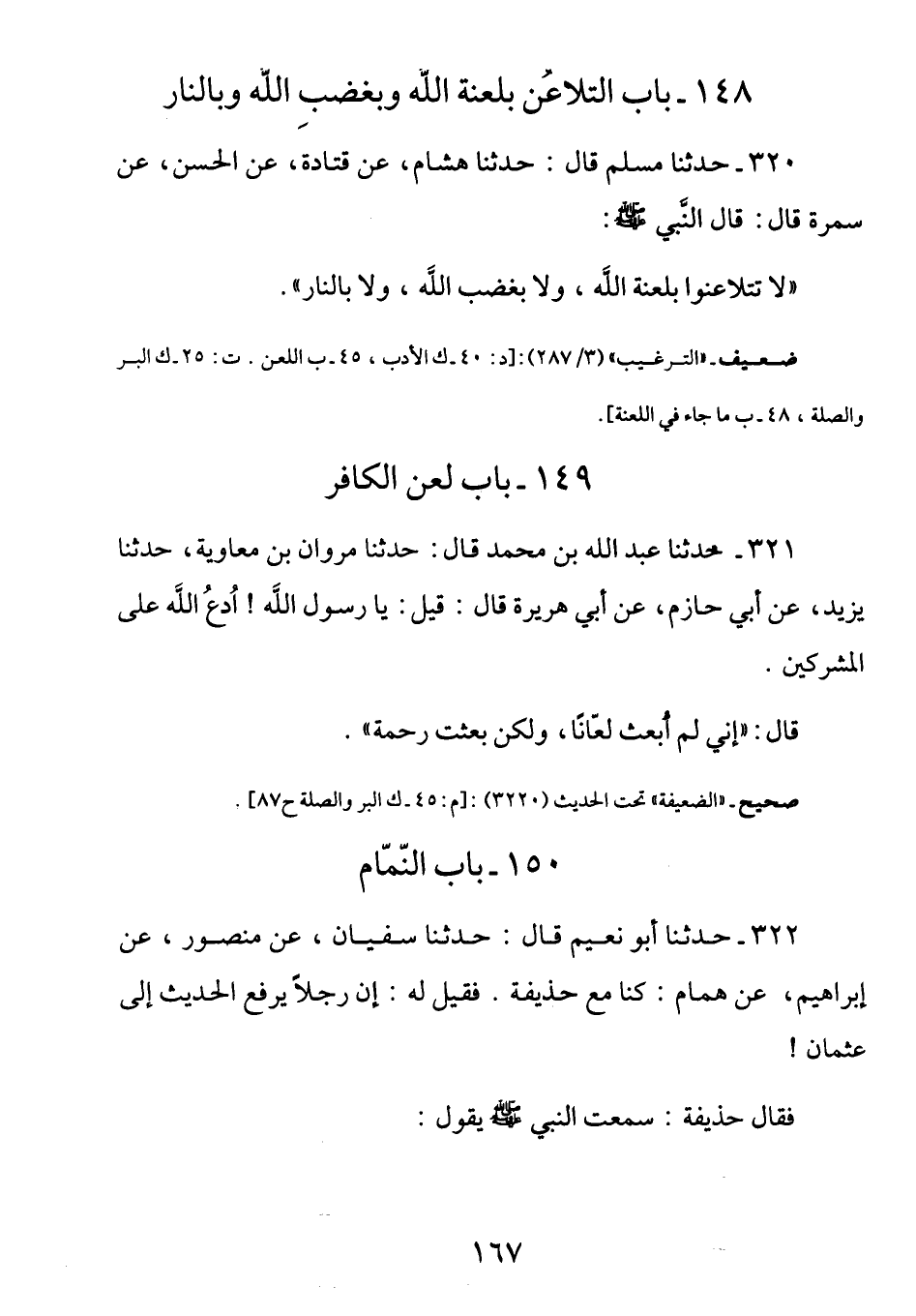 320 - عن سمرة رضي الله عنه قَالَ: قَالَ النَّبِيُّ صَلَّى اللهُ عَلَيْهِ وَسَلَّمَ: (لَا تَتلاعَنوا بِلعنةِ اللَّهِ وَلَا بِغَضبِ اللَّهِ ولا بِالنَّار)