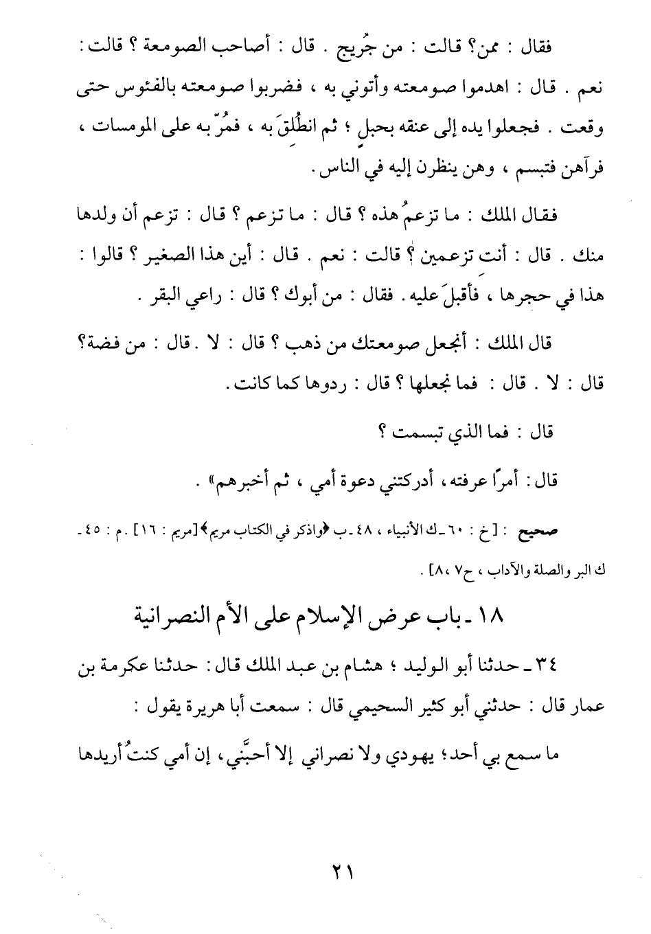 34 - عن أبي هريرة - رضي الله عنه - قال مَا سَمِعَ بِي أحدٌ يَهُودِيٌّ وَلَا نَصْرَانِيٌّ إِلَّا أَحَبَّنِي، إِنَّ أُمِّي كُنْت أُرِيدُها