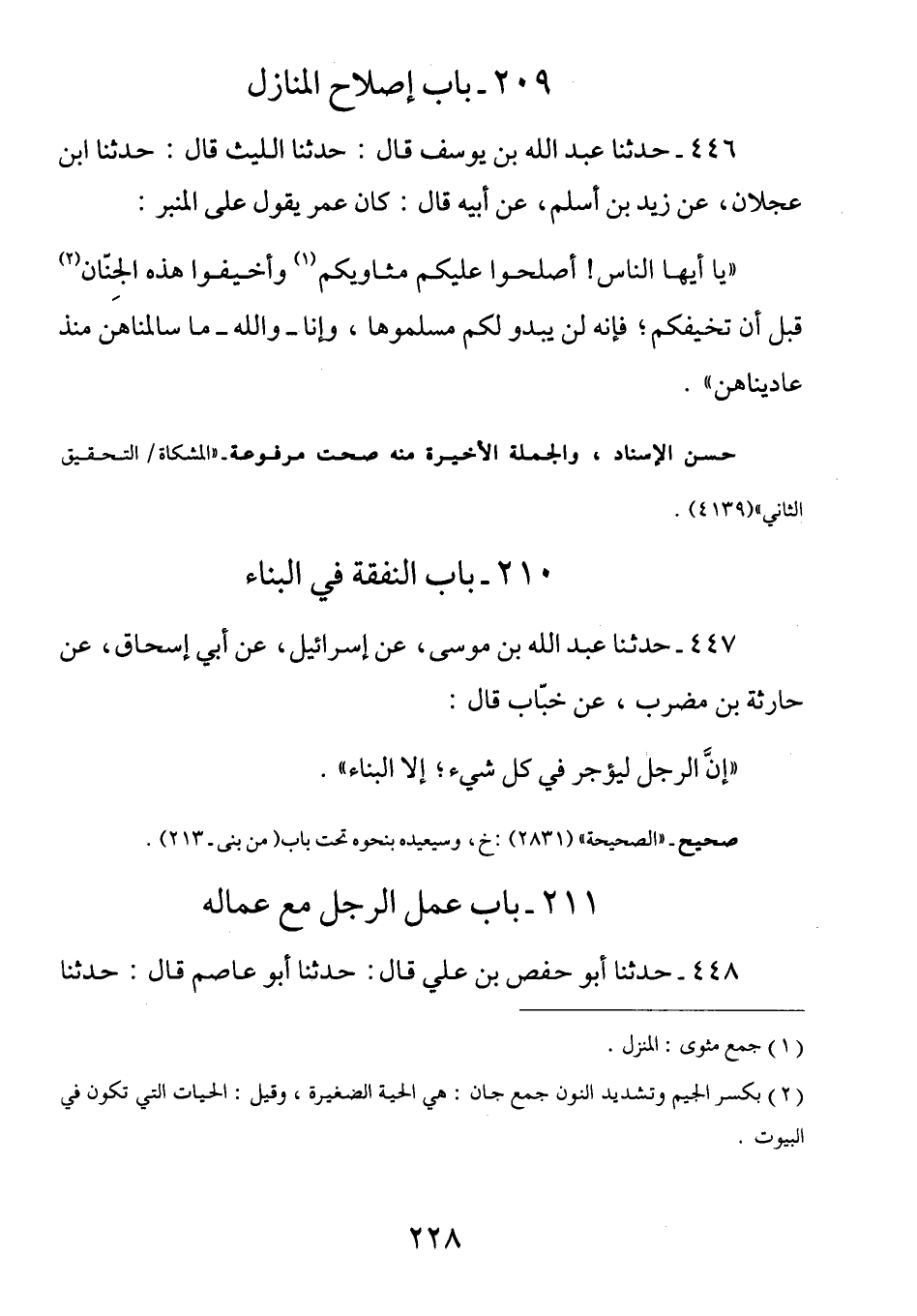 447 - (ث 107) عن خباب رضي الله عنه قَالَ: إنَّ الرجُلَ لَيؤجَرُ فِي كُل شِيءٍ إلا البِناء.